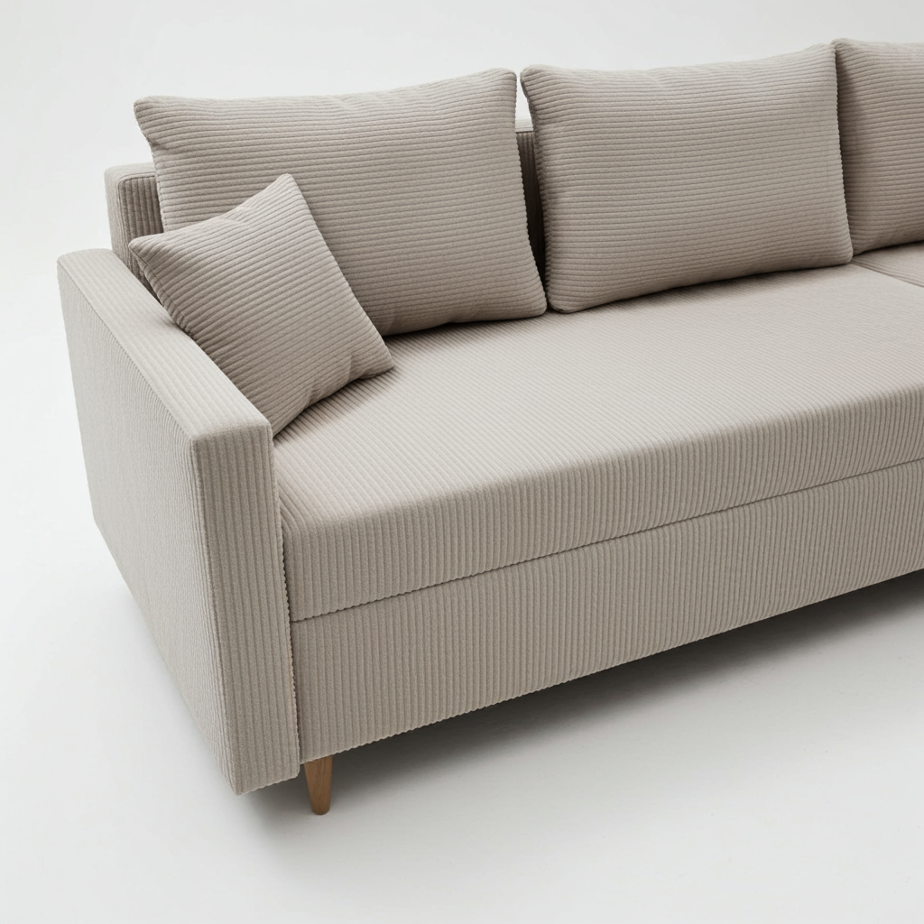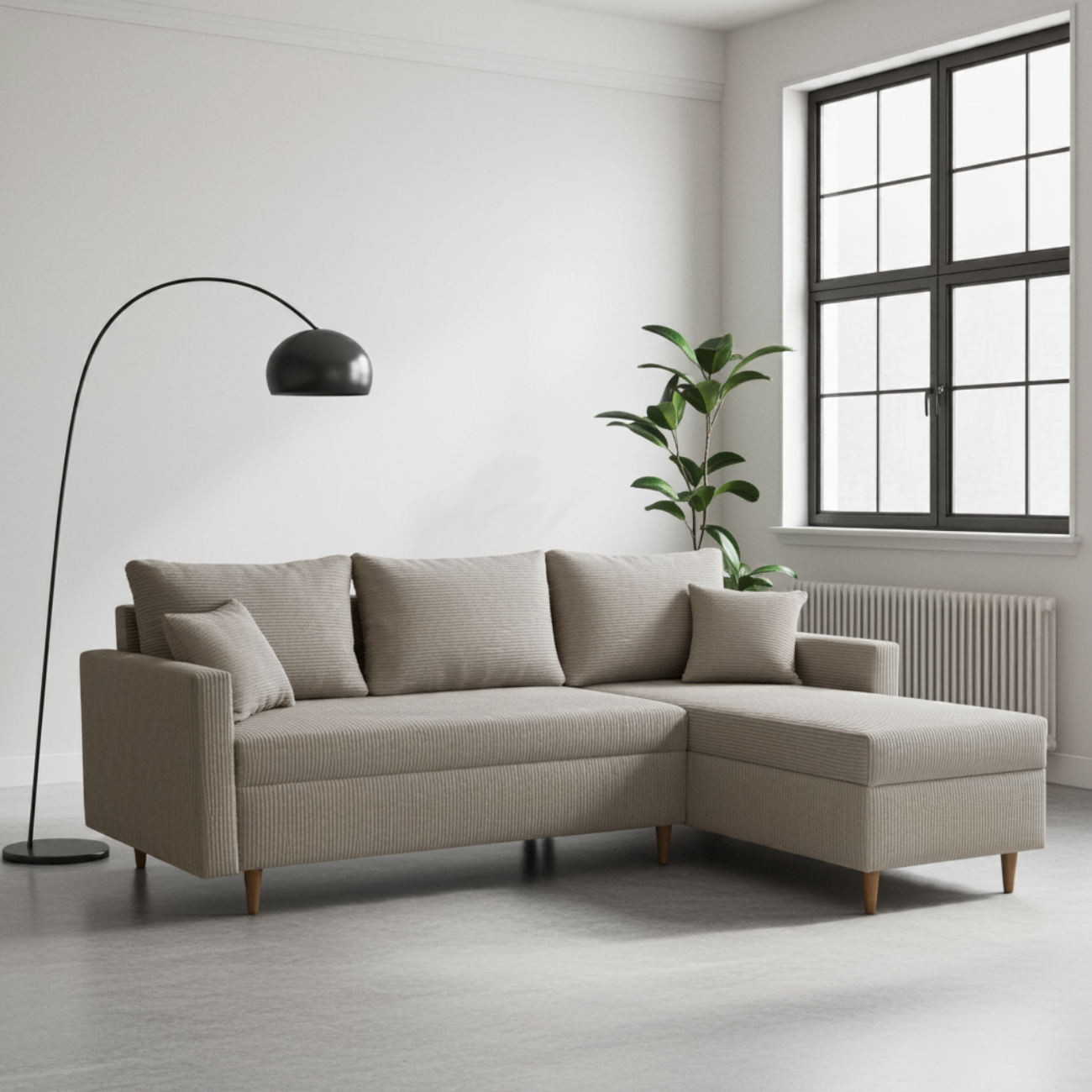 Estetyka: Narożnik rozkładany do salonu w tkaninie sztruksowej to eleganckie i stylowe rozwiązanie, które pasuje do wielu rodzajów wnętrz i dodaje im przytulności.
