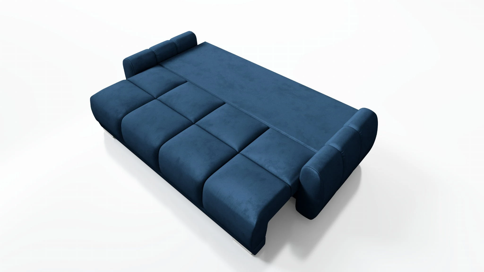 Niebieska sofa honey 3 z funkcja spania + pojemnik na pościel