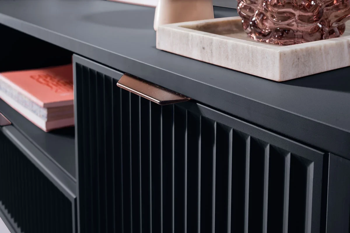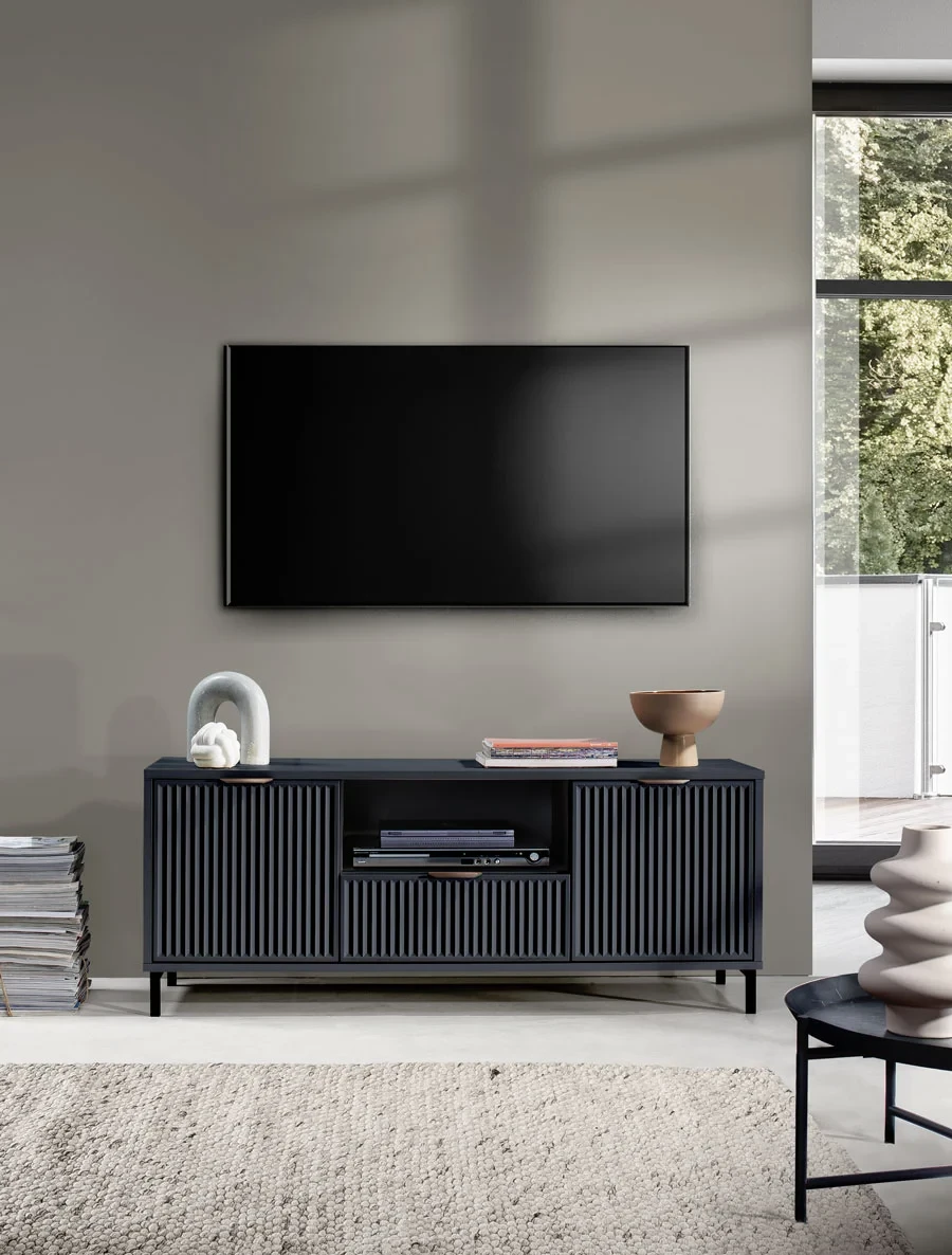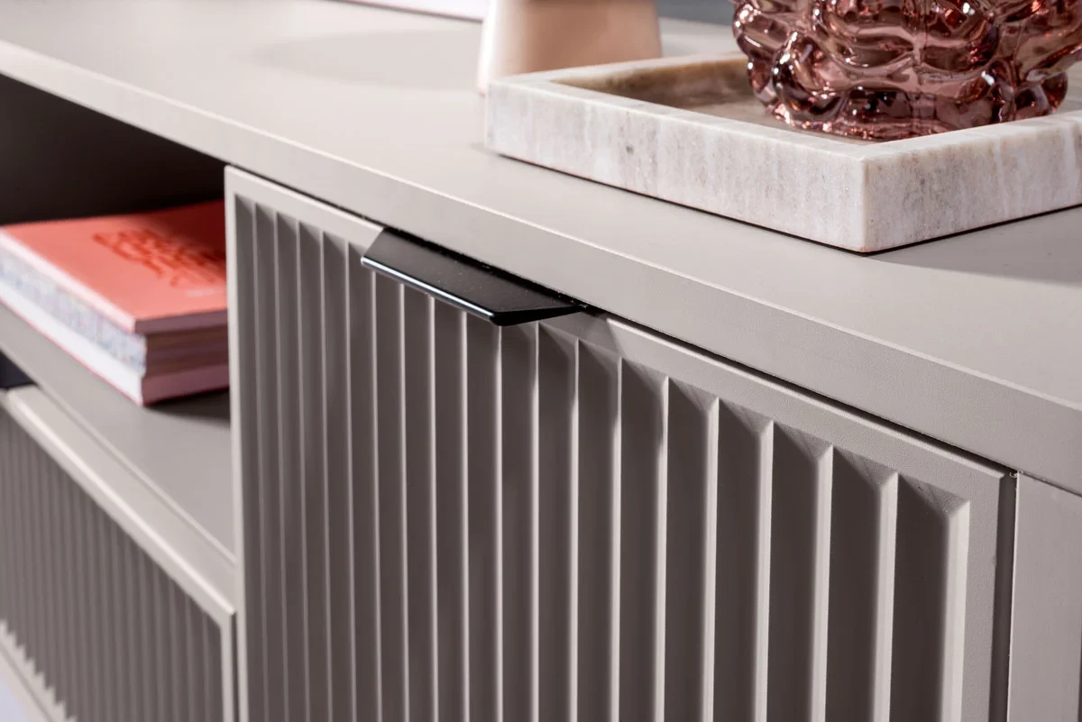 NOWOCZESNA SZAFKA RTV POD TELEWIZOR Z RYFLOWANYMI FRONTAMI