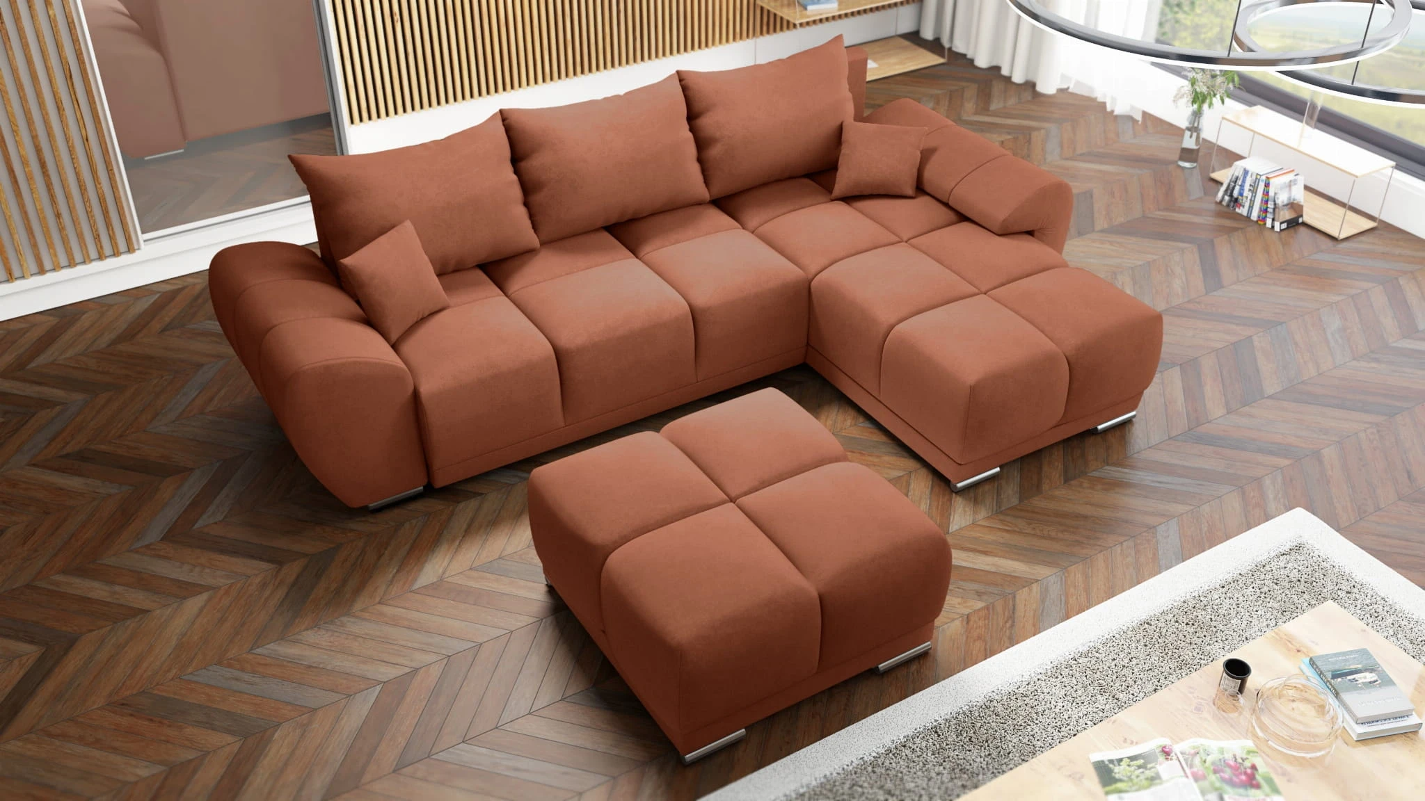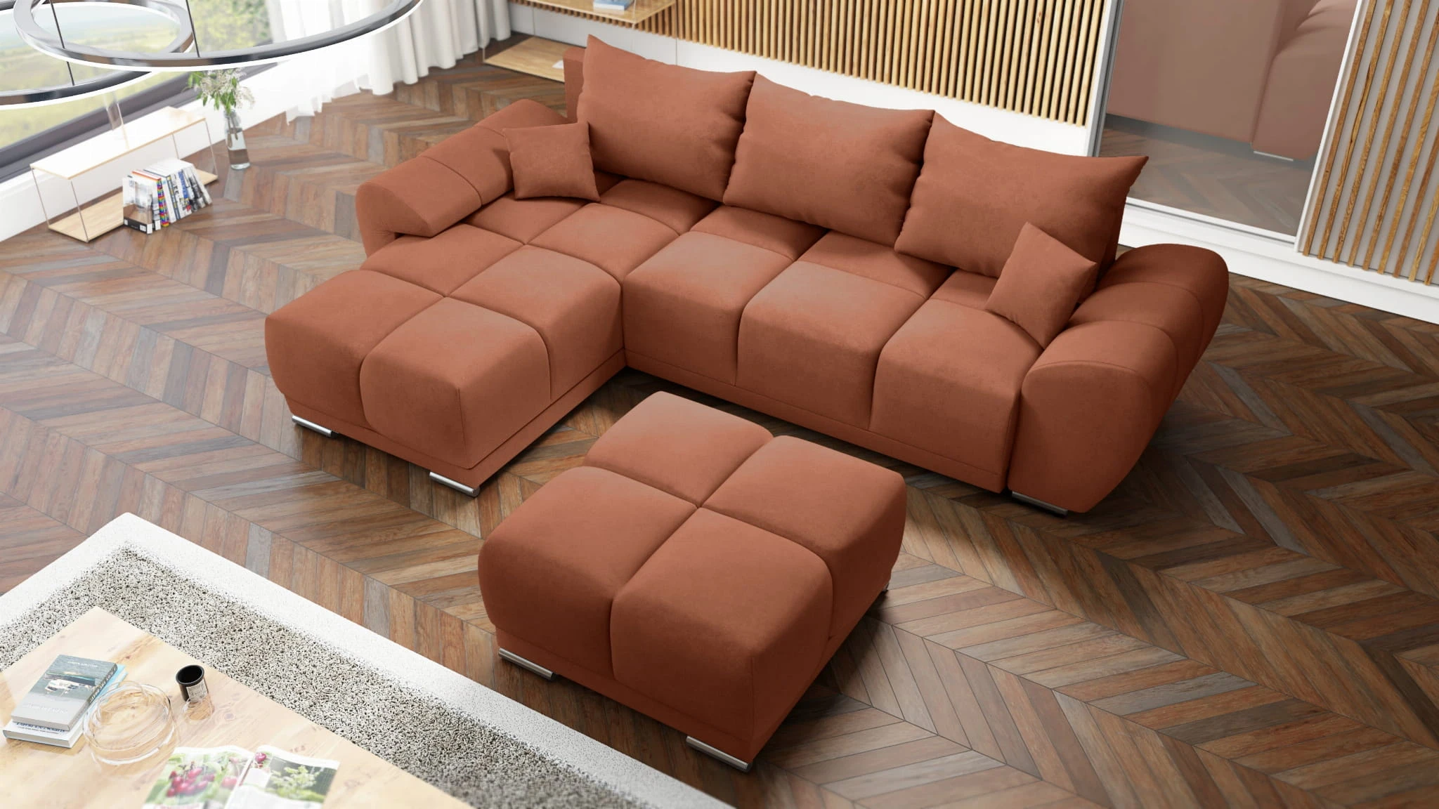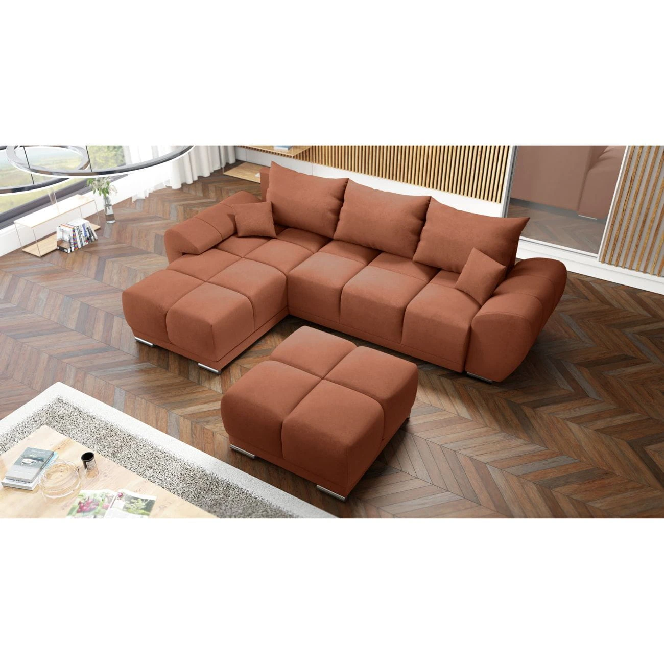 NAROŻNIK HONEY Z DUŻĄ PUFĄ TAPICEROWANĄ - WYGODNE I PRZYTULNE CENTRUM TWOJEGO SALONU