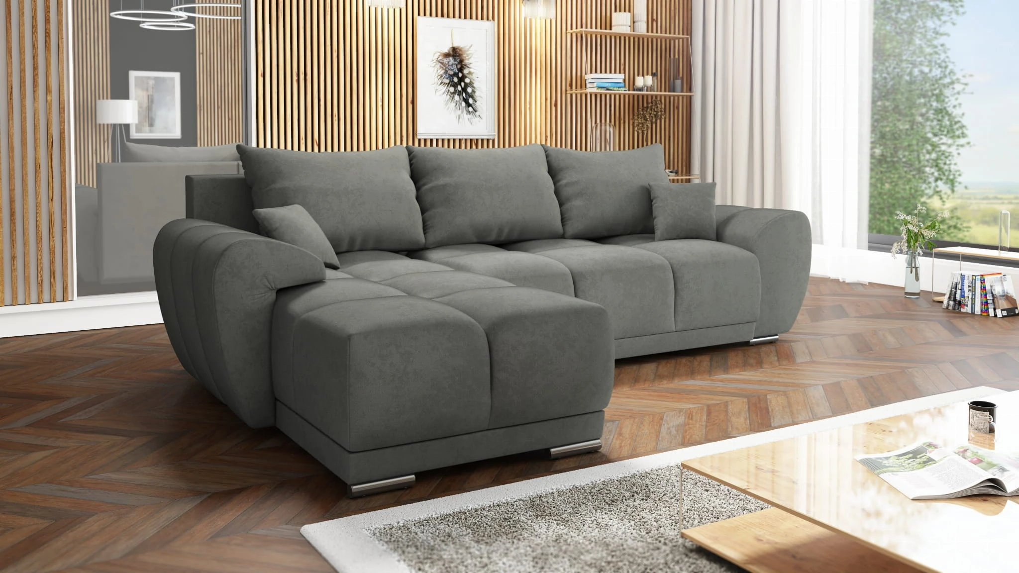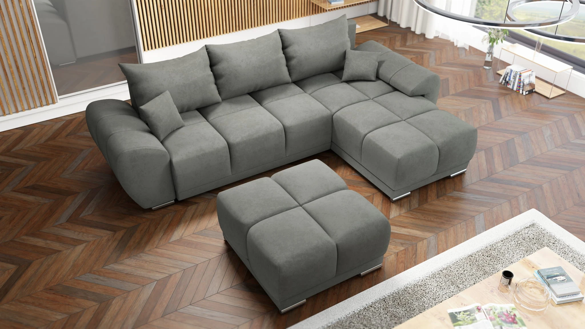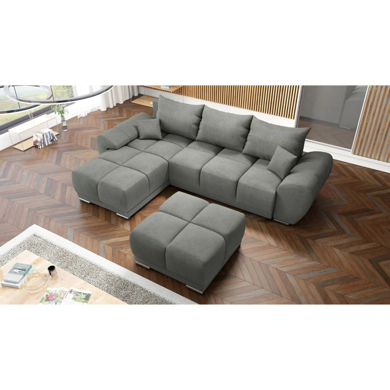 NAROŻNIK HONEY Z DUŻĄ PUFĄ TAPICEROWANĄ - NOWOCZESNE I PRZYTULNE CENTRUM TWOJEGO SALONU