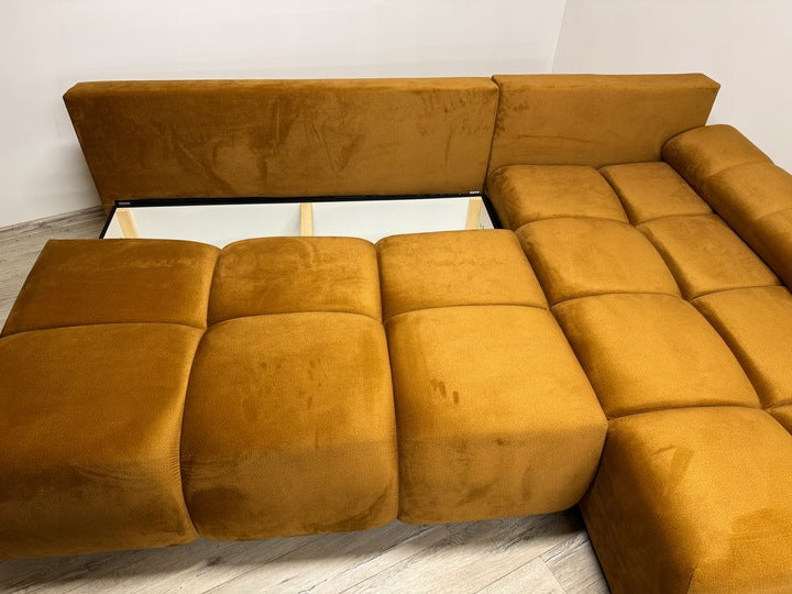 NOWOCZESNY NAROŻNIK ROGÓWKA DO SALONU FUNKCJA SPANIA BESTII POJEMNIK WELUR PROMOCJA -20%