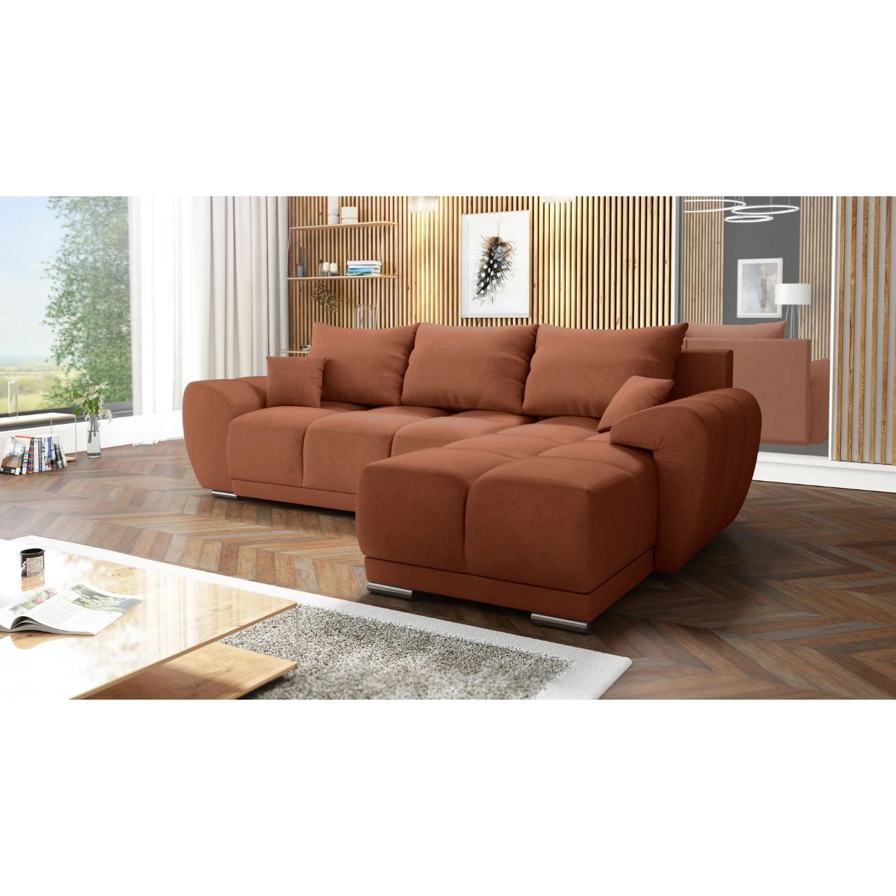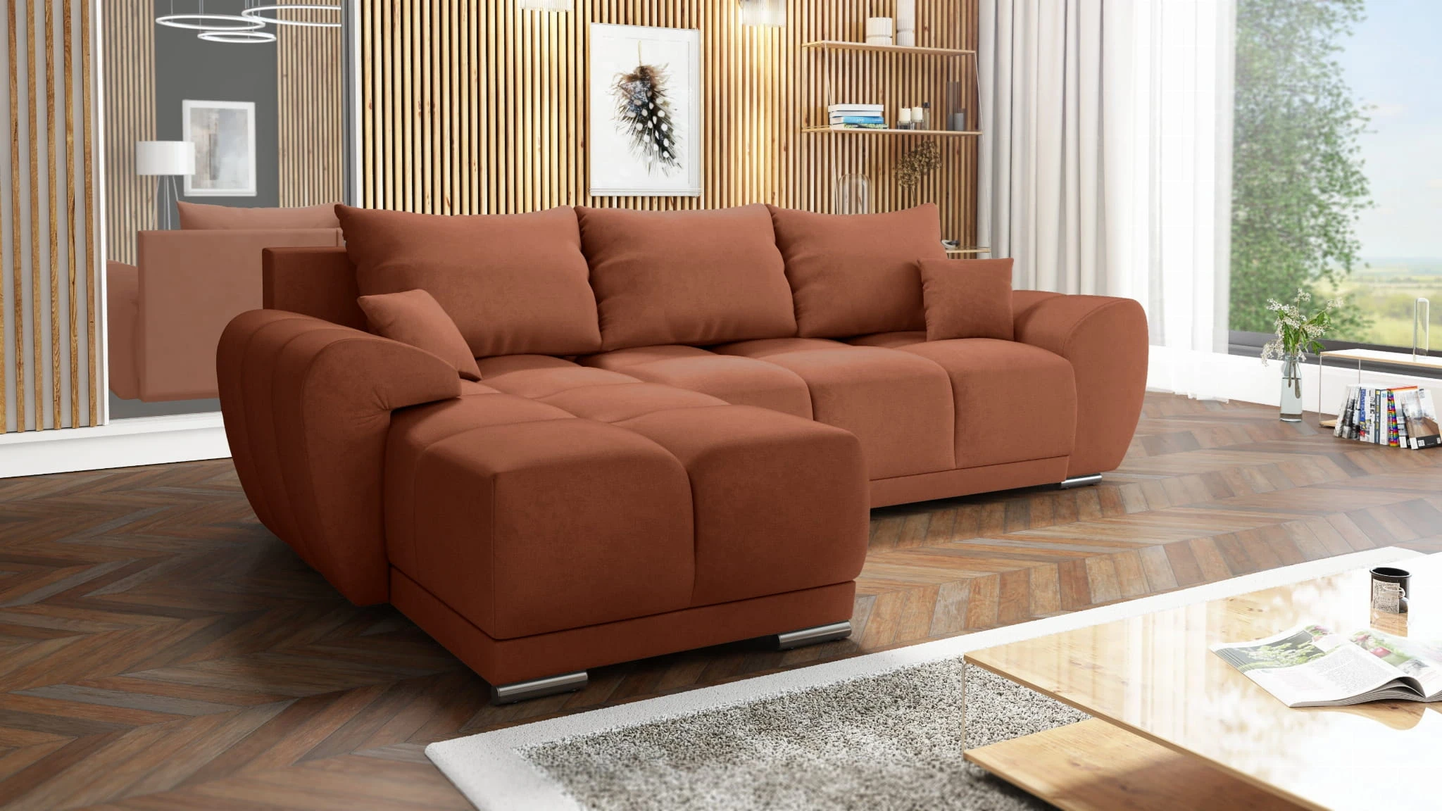 Nowoczesny narożnik z funkcja spania i pojemnikiem na pościel + pojemnik na pościel