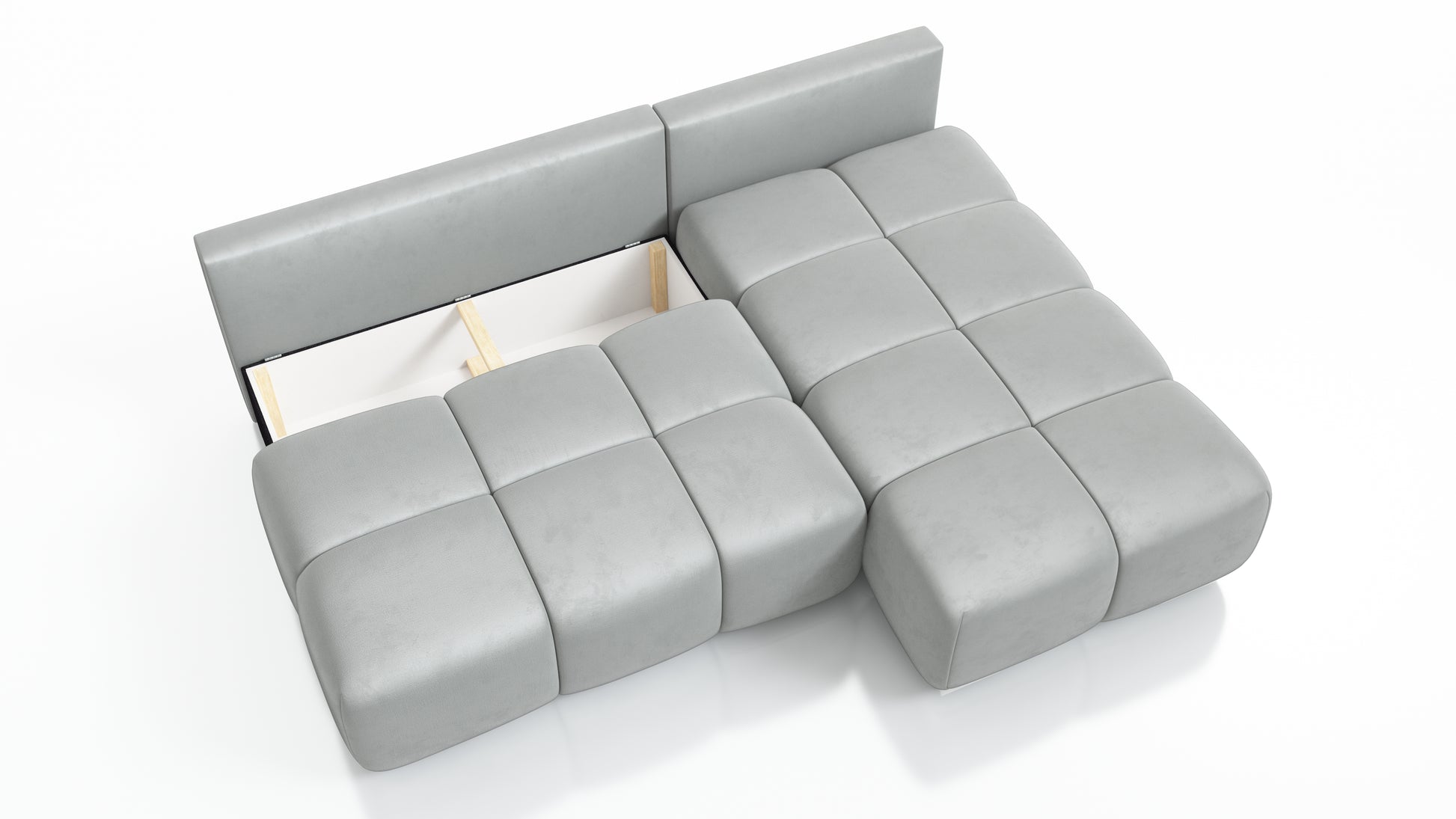 3️⃣ Opuść oparcie – gotowe! Narożnik zamienia się w wygodne łóżko.