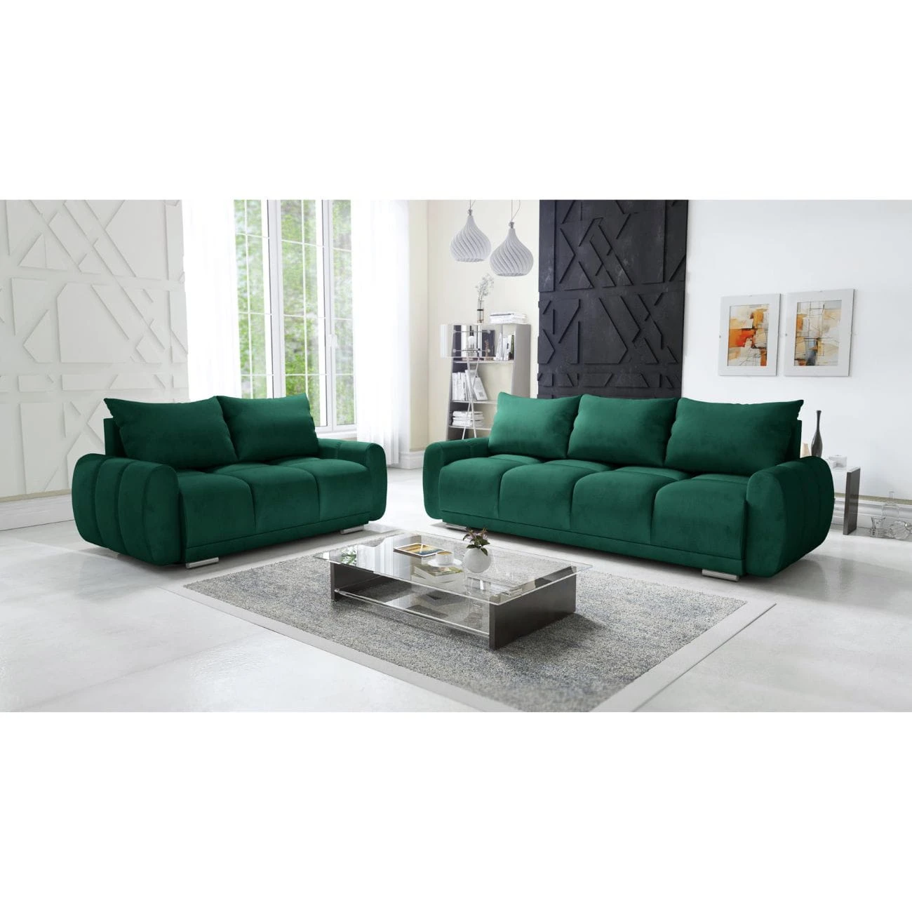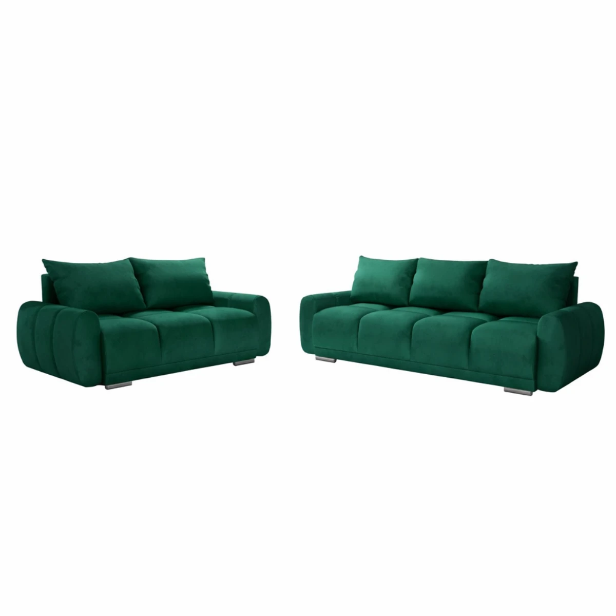 NOWOCZESNY, ZIELONY, WYGODNY ZESTAW DO SALONU PIKOWANA KANAPA ROZKŁADANA ORAZ SOFA DO SALONU HONEY