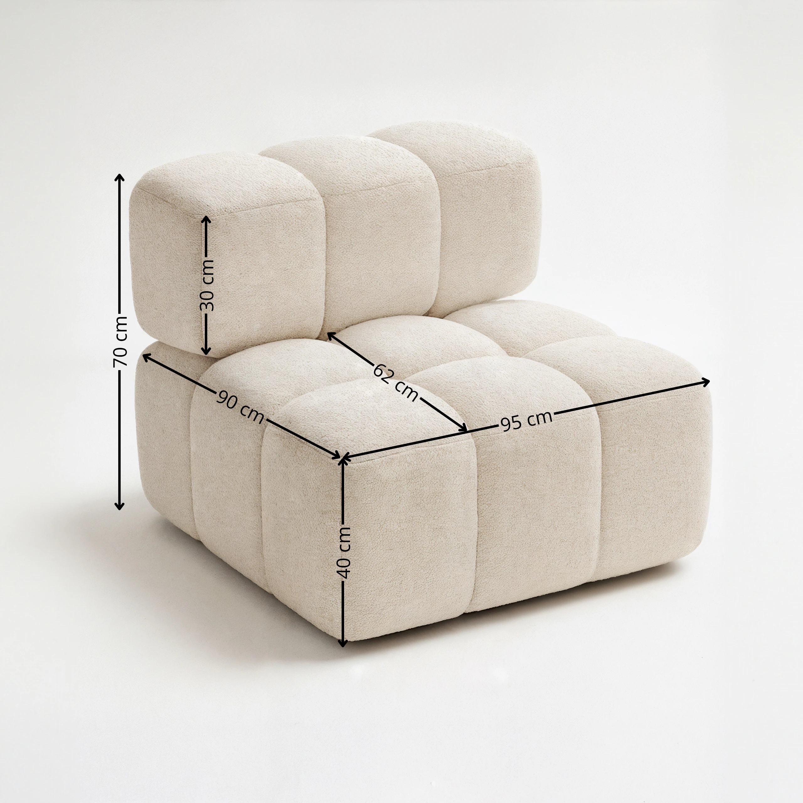 Narożnik modułowy Clixi jest meblem wolnostojącym - możesz ją umieścić na środku salonu i wciąż będzie się świetnie prezentować. Tył rogówki modułowej został obity tkaniną, a niebanalny design w postaci kostek przykuje zarówno Twoją uwagę jak i Twoich gości.