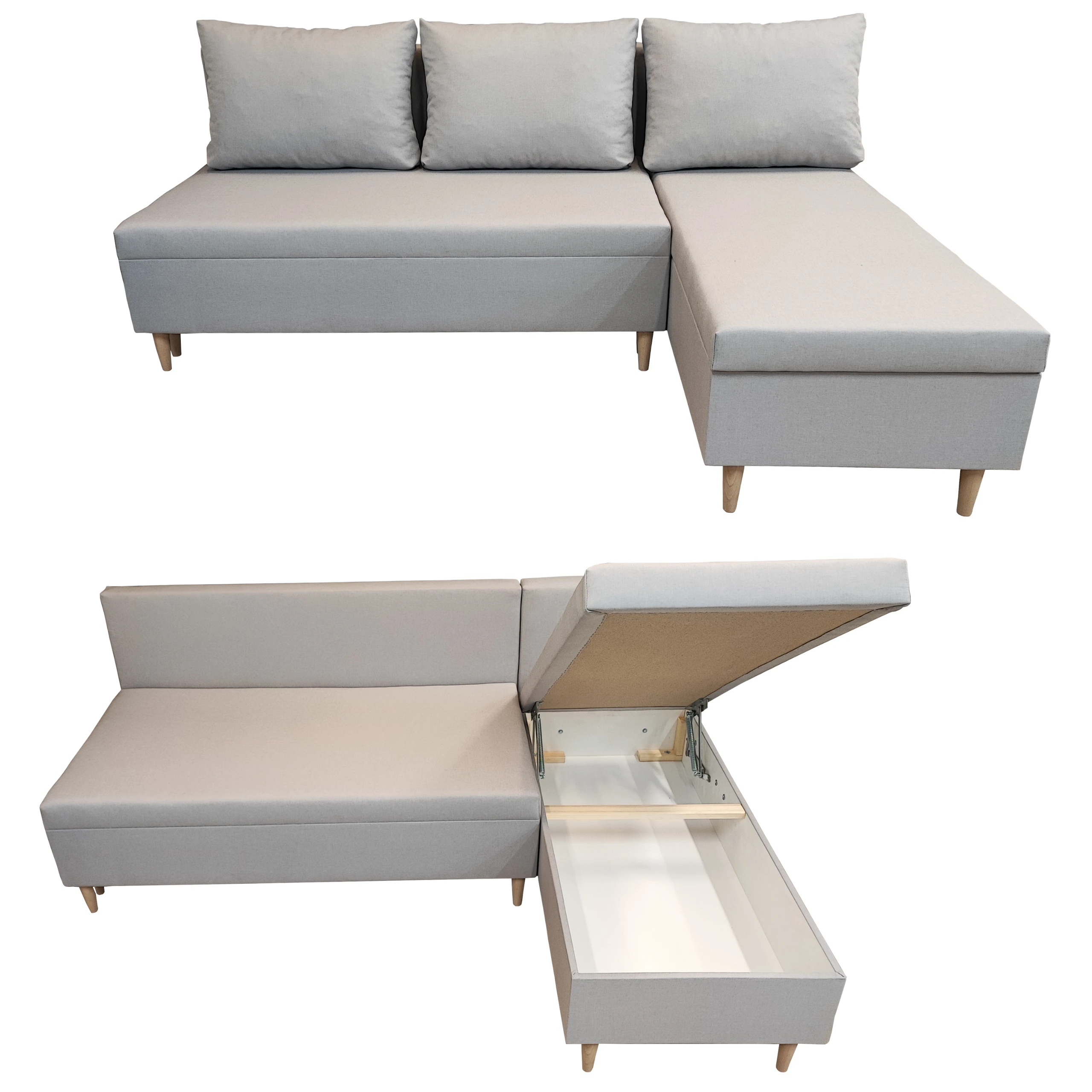 SIWY MAŁY NAROŻNIK ROZKŁADANY SCANDIK MINI 200 CM ROGÓWKA POJEMNIK PRAWY