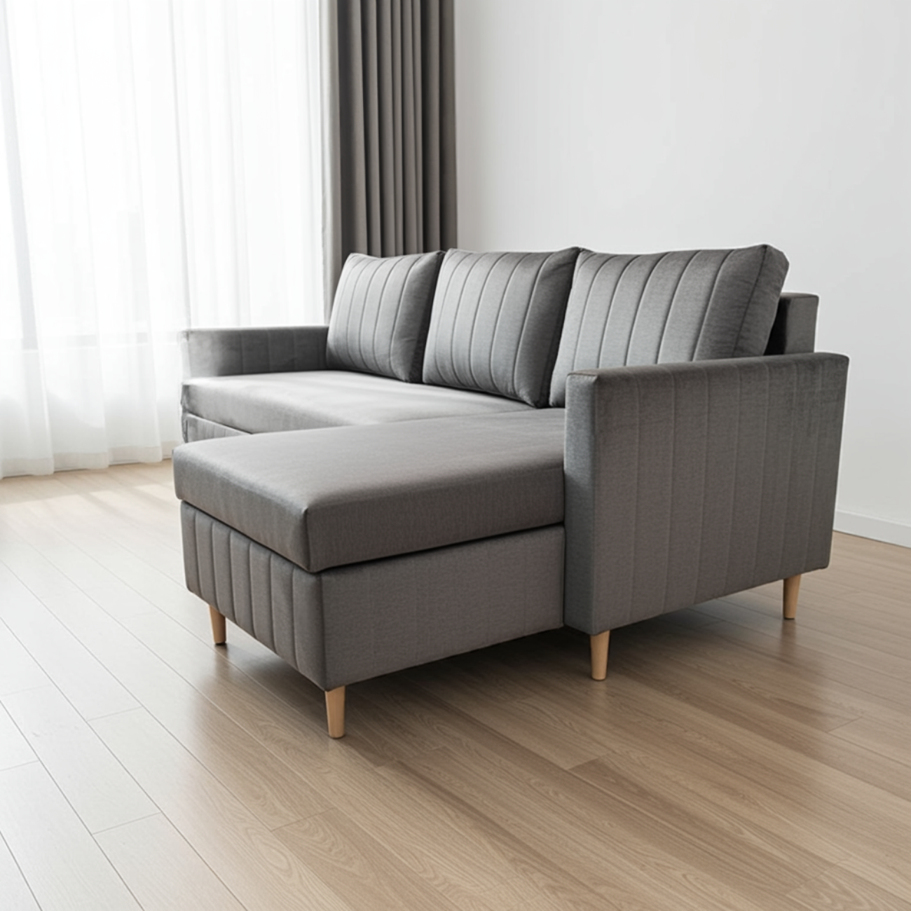 - Dwa pojemniki na pościel: dodatkowa przestrzeń do przechowywania, pomagająca utrzymać porządek w salonie.