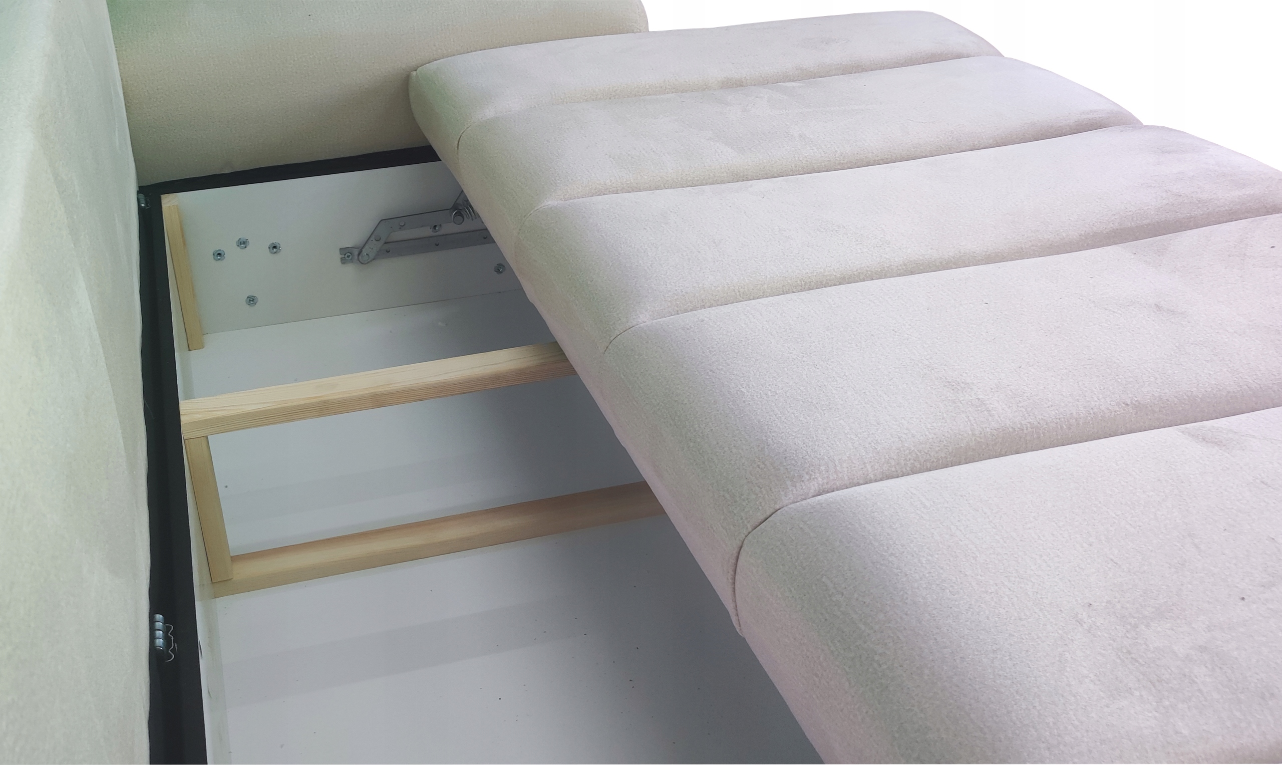 - Funkcja spania wykonana na stelażu z ramy drewnianej oraz sprężynach falistych