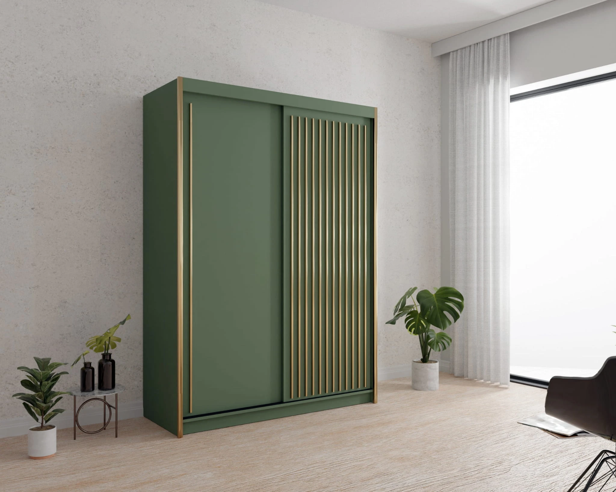 SZAFA PRZESUWNA DO SYPIALNI LAMELE ZIELONA ARTIST