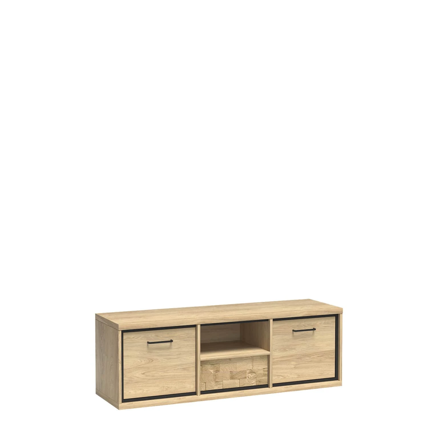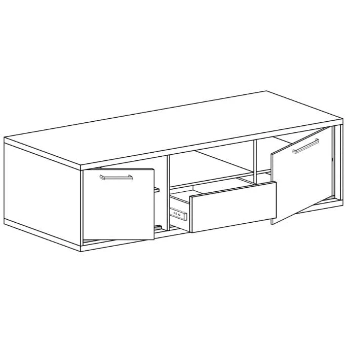 Zestaw mebli Italia został wykonany w popularnym, ciepłym kolorze natural hikora, który w połączeniu z loftowymi, czarnymi wstawkami tworzy niezwykłe połączenie. Nowoczesny design wpasuje się zarówno do salonu, sypialni czy pokoju młodzieżowego. Zestaw Italia to uniwersalne rozwiązanie do domu oraz biura!