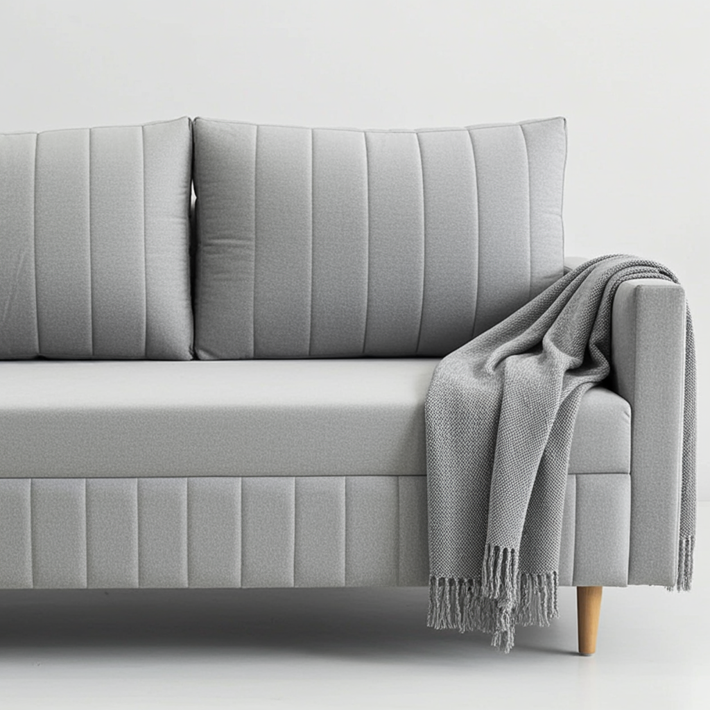 - Pojemnik na pościel : Skandynawska sofa Frida wyposażona jest w duży pojemnik na pościel, który pozwala na wygodne przechowywanie rzeczy, co jest idealnym rozwiązaniem w mniejszych mieszkaniach.