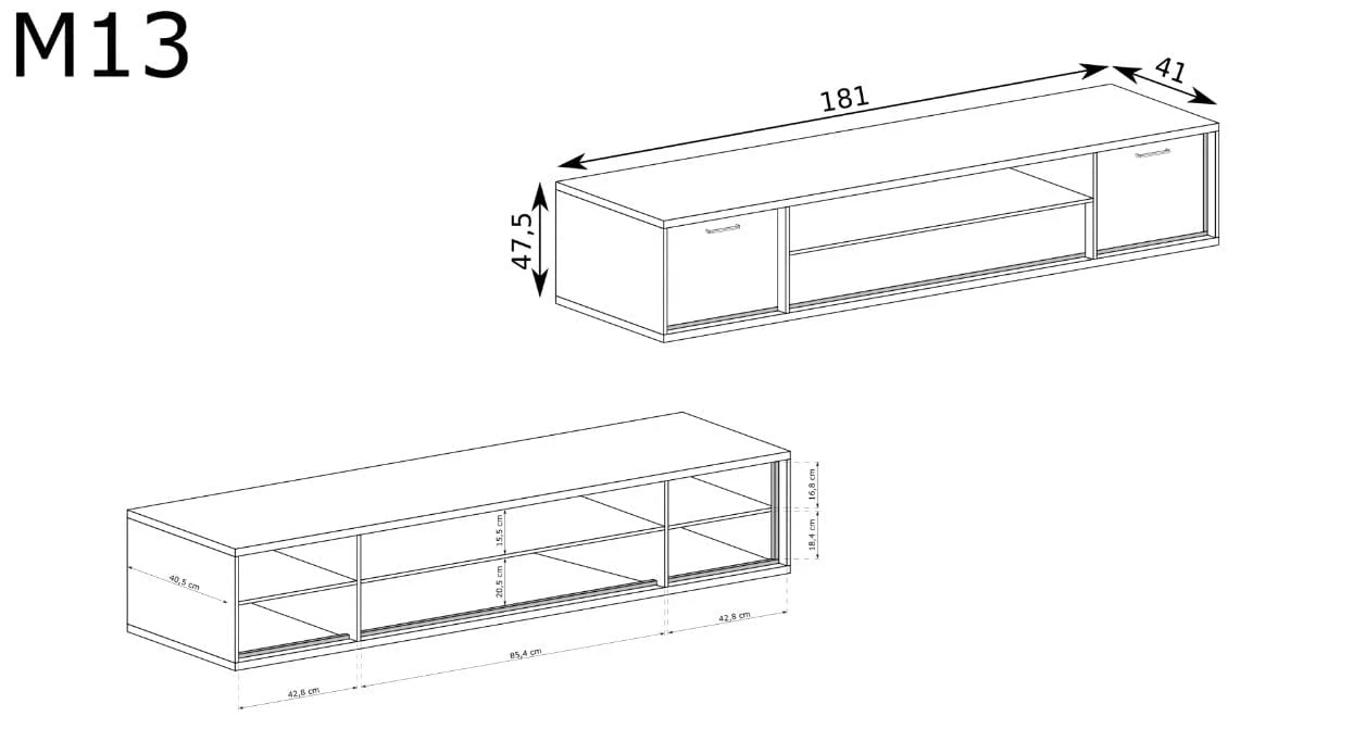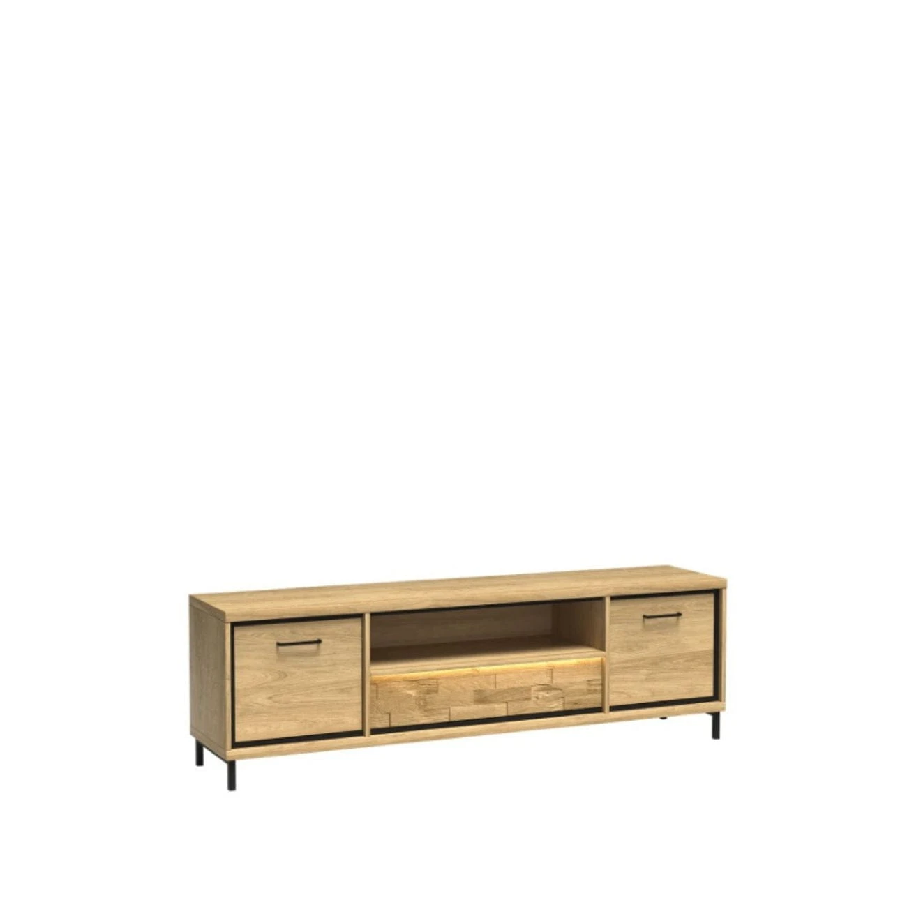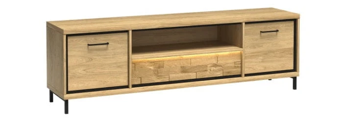 SZEROKA SZAFKA STOLIK RTV POD TV HIKORA ITALIA NOGI DEKOR LED