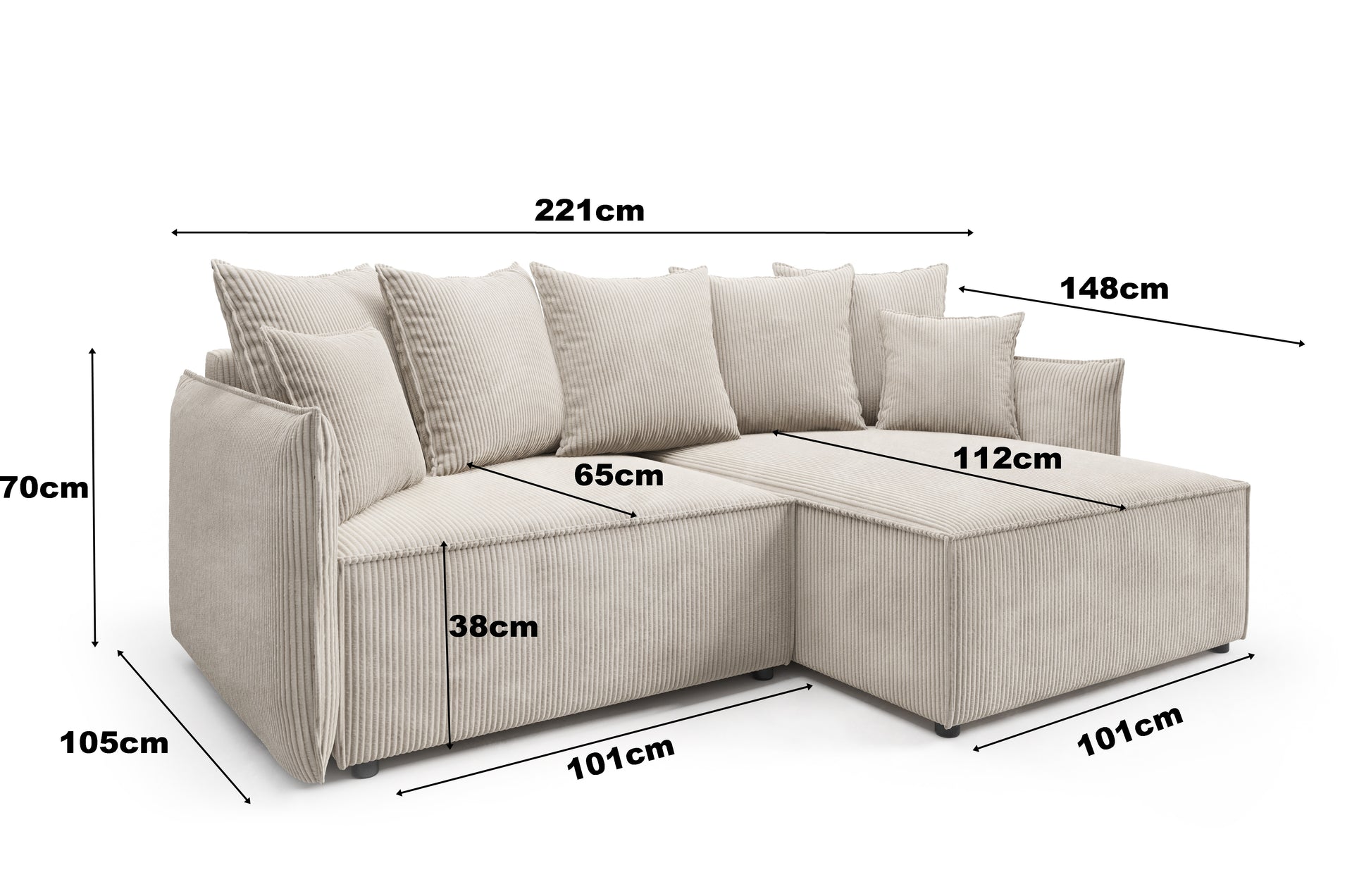 ✅Wygoda: Tkanina sztruksowa jest miękka i przyjemna w dotyku, co zapewnia wygodę podczas siedzenia i wypoczynku na naszym narożniku z funkcją spania.