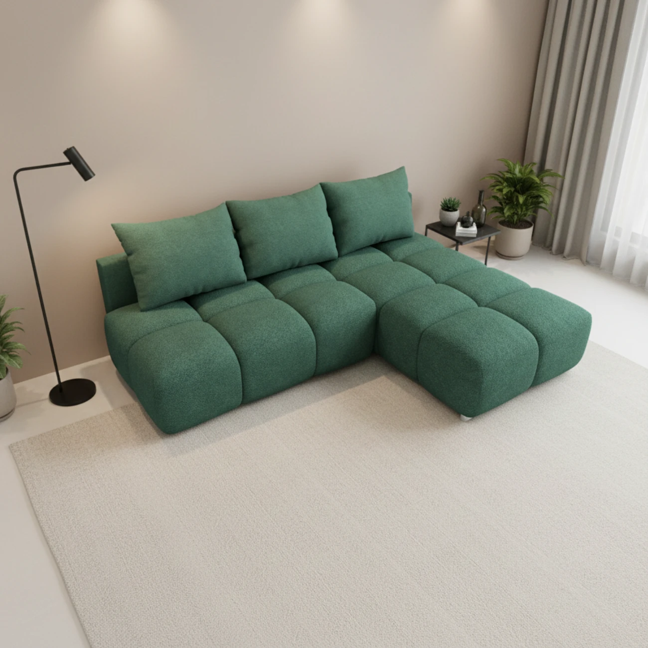 ✔ Nowoczesny design z głębokim pikowaniem – Efektowne wciągi nadają narożnikowi unikalny wygląd, przyciągając wzrok i dodając elegancji każdemu wnętrzu.