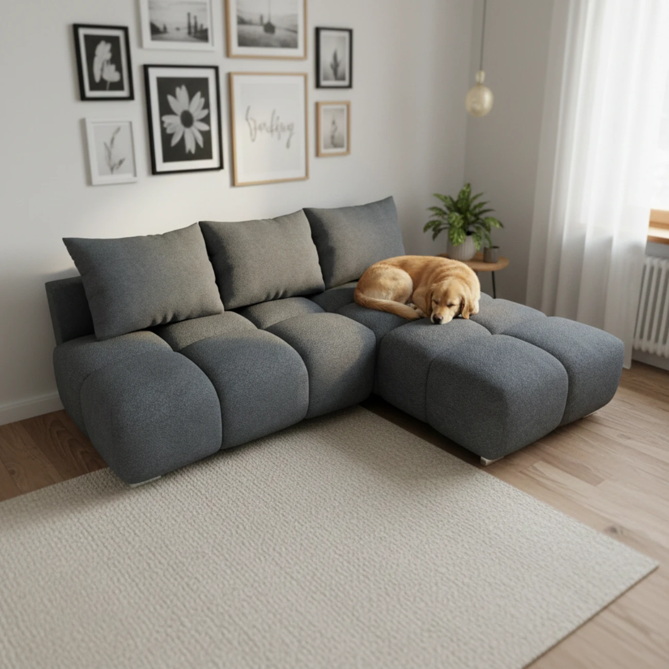 ✔ Nowoczesny design z głębokim pikowaniem – Efektowne wciągi nadają narożnikowi unikalny wygląd, przyciągając wzrok i dodając elegancji każdemu wnętrzu.