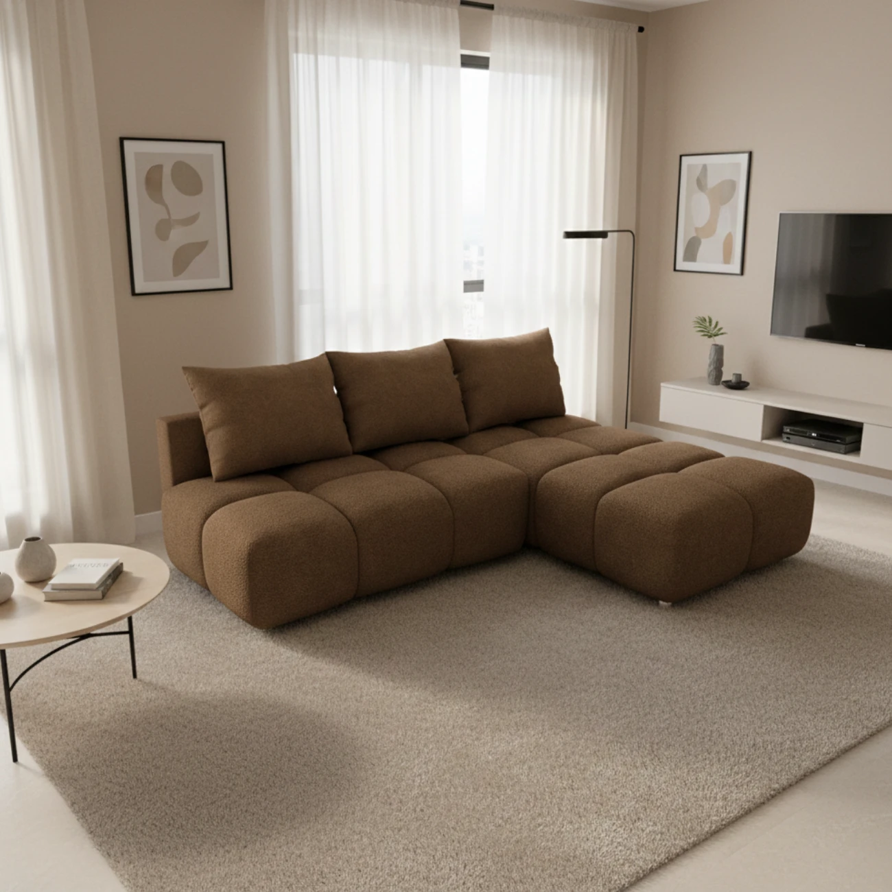 ✔ Nowoczesny design z głębokim pikowaniem – Efektowne wciągi nadają narożnikowi unikalny wygląd, przyciągając wzrok i dodając elegancji każdemu wnętrzu.