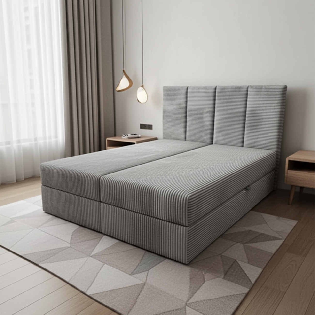- Tkanina Top Sztruks: Wykonane z grubej, mięsistej tkaniny Top Sztruks, łóżko jest nie tylko trwałe, ale również niezwykle przyjemne w dotyku, co dodatkowo podnosi komfort użytkowania.
