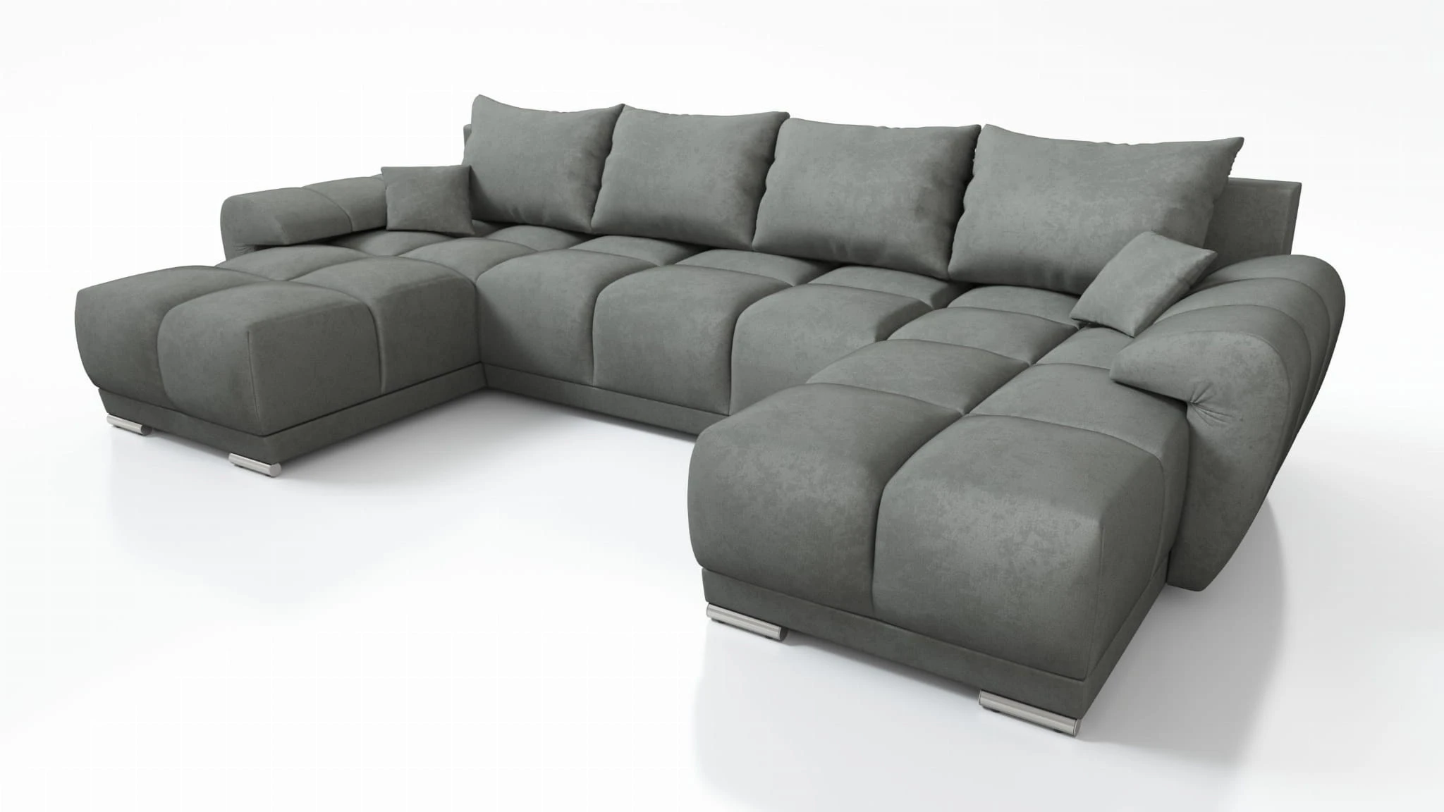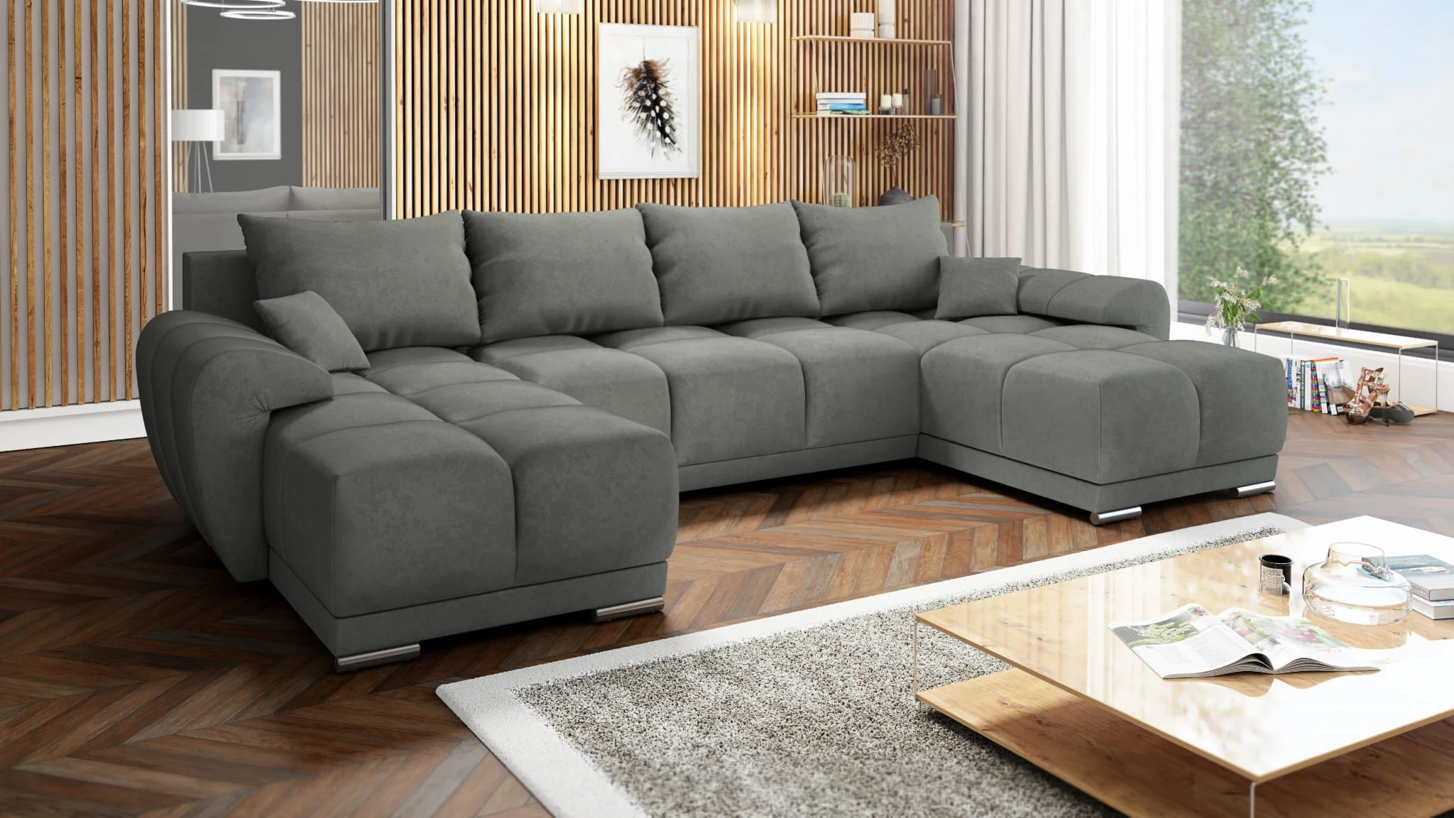 Narożnik rozkładany Honey U został wyposażony w funkcję spania o powierzchni 130x310 cm. To odpowiednia szerokość dla dwóch osób.