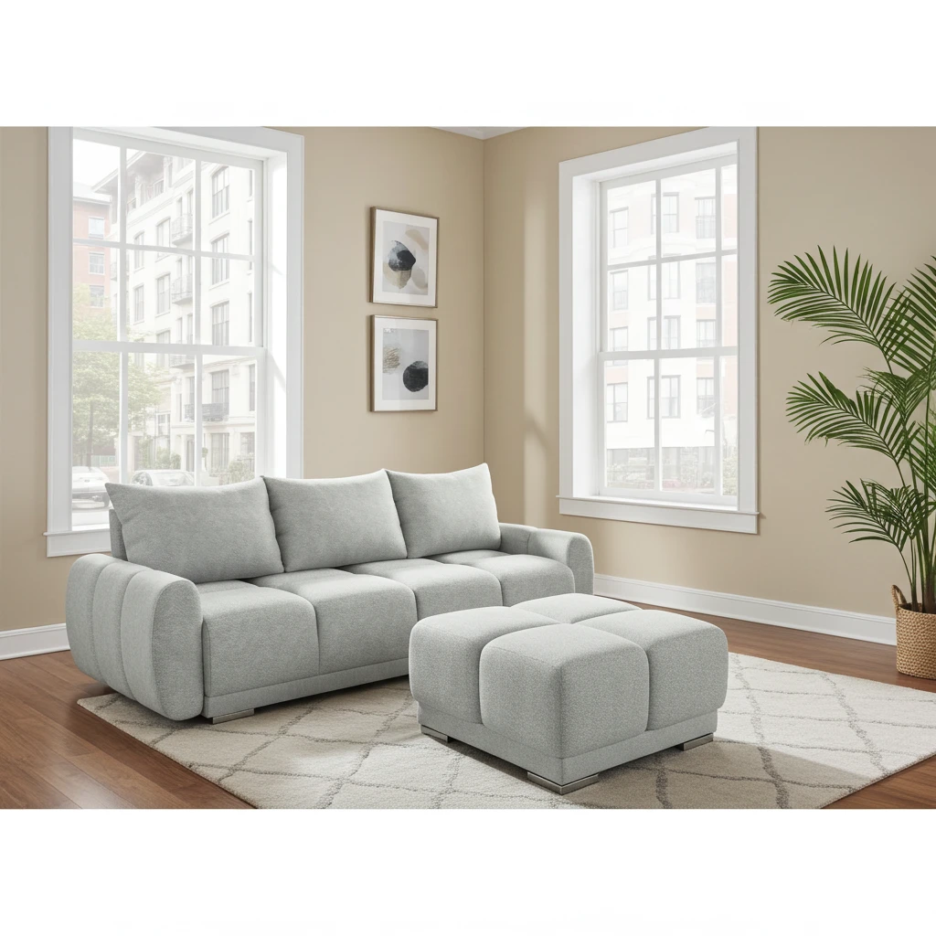 sofa z funkcja spania + pufa tapicerowana Honey tkanina plamoodporna