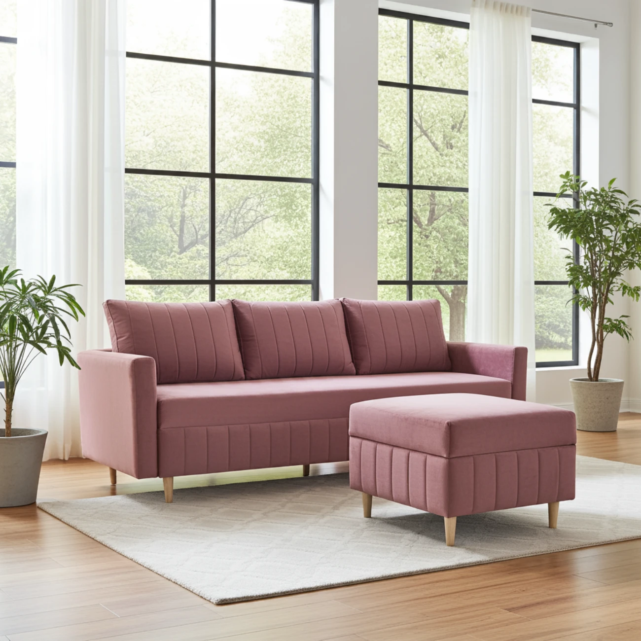 ZESTAW DO SALONU - KANAPA ROZKŁADANA FRIDA 3 + PUFA 60x60 CM ZE SPRĘŻYNAMI BONELL
