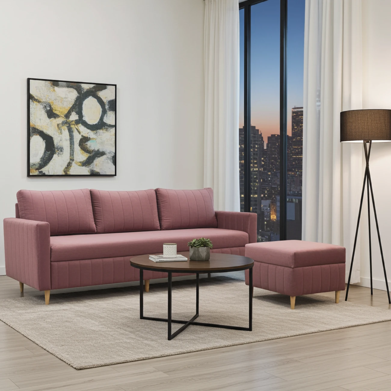kanapa z funkcja spania frida + pufa tapicerowana scandik