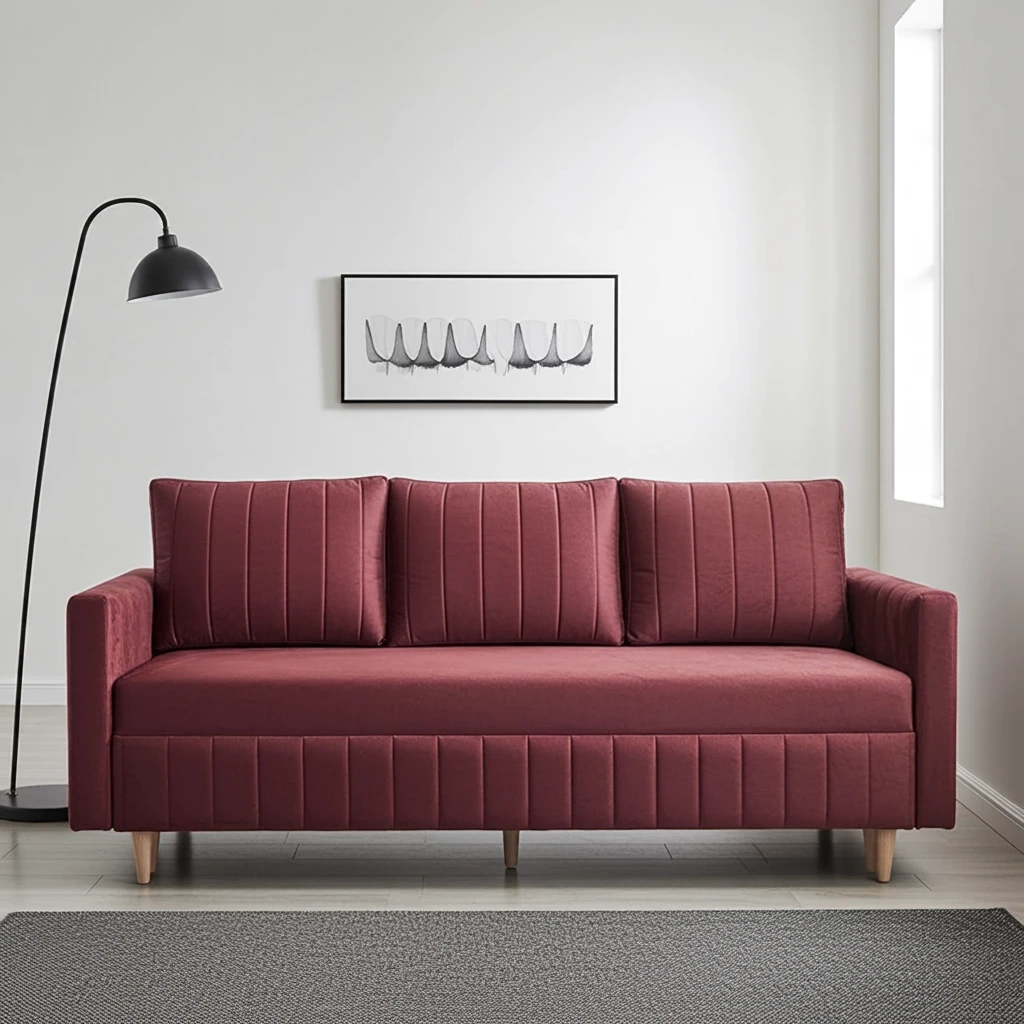 - Trzy duże poduszki z eleganckimi przeszyciami