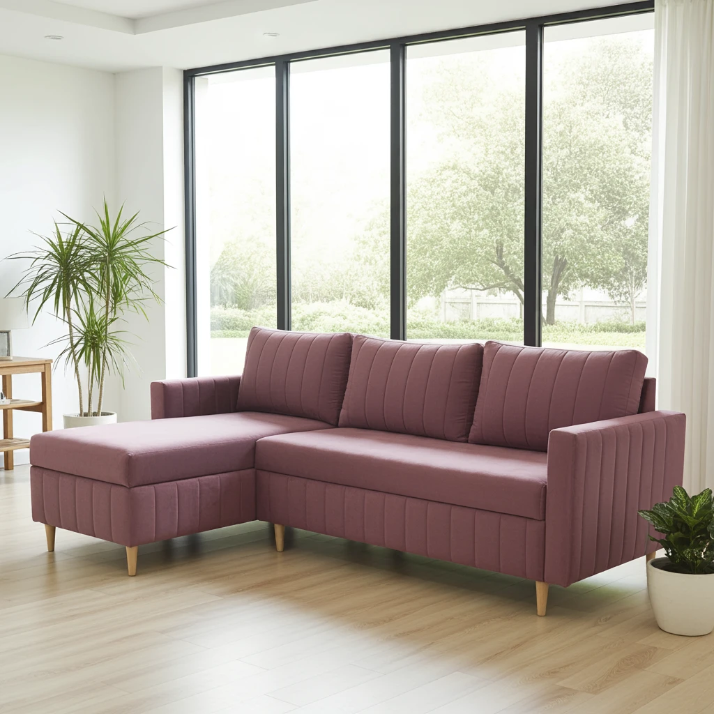 Eleganckie narożniki w stylu skandynawskim to popularne i cenione meble. Wysokie nóżki umożliwiają zachowanie czystości pod narożnikiem, gdyż ich wysokość jest wystarczająca, by zmieściły sie pod nim najpopularniejsze roboty sprzątające. Przełamanie skandynawskiego minimalizmu przeszyciami oraz welurową tkaniną pozwoliło stworzyć narożnik, który odnajdzie się zarówno w nowoczesnym salonie jak i tym zaprojektowanym według skandynawskiego wzornictwa