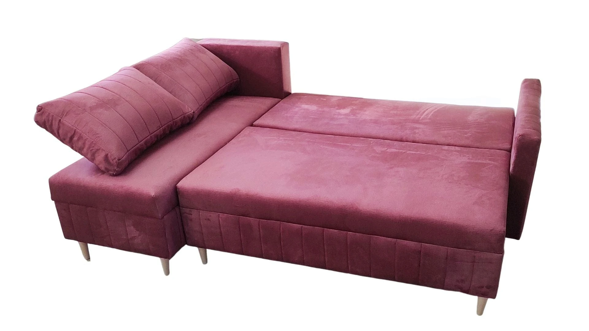 Rozłożenie narożnika Frida jest niezwykle proste oraz szybkie. Wystarczy zdjąć poduszki, a następnie minimalnie podnieść siedzisko oraz równomiernie je wysunąć. Dzięki zastosowaniu rolek wysunięcie siedziska jest proste i nie wymaga użycia siły. Komfort snu zapewni materac wypełniony pianką oraz sprężynami bonell. Twardość materaca to H3 - średniotwardy. Ten stopień twardości jest uznawany za najzdrowszy dla kręgosłupa.