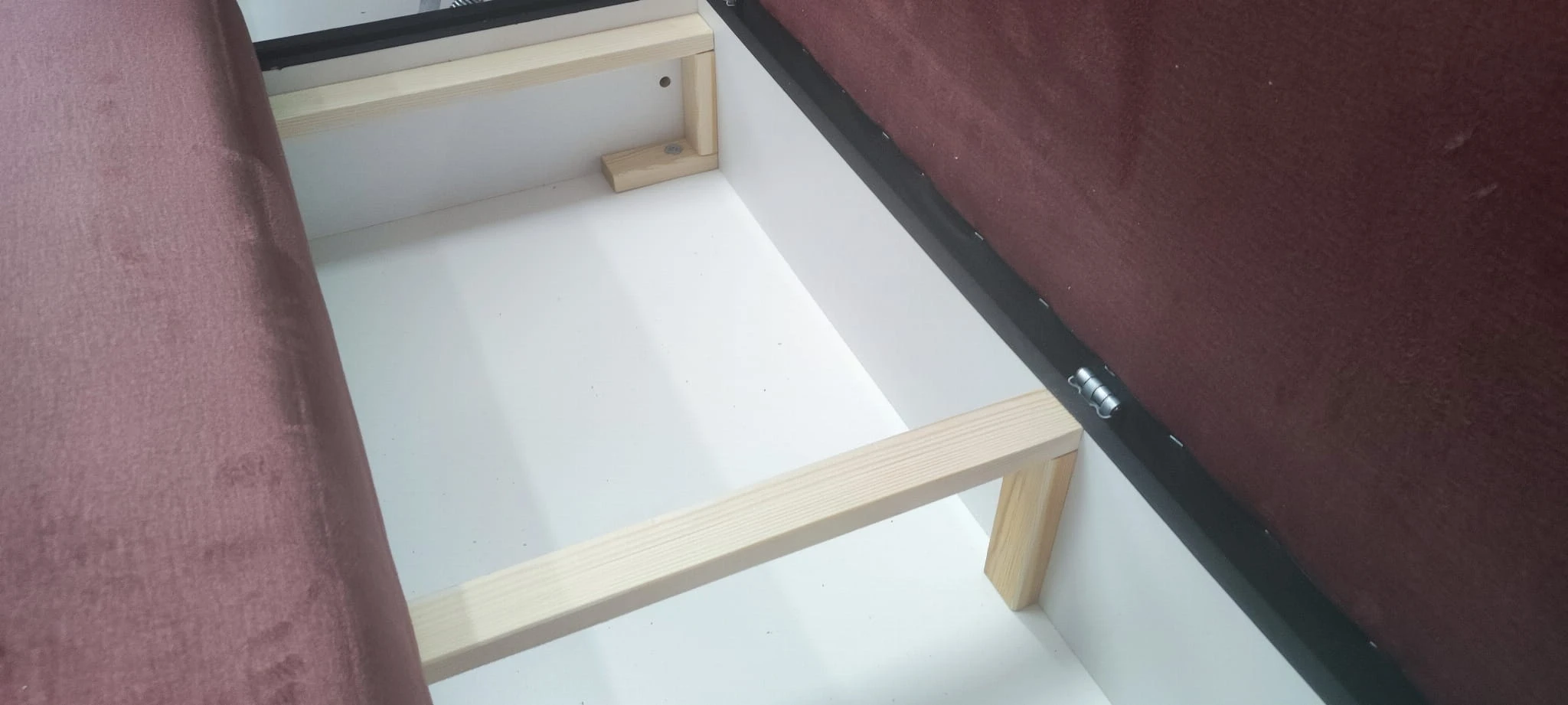 - Stelaż wykonany z litego drewna oraz płyty meblowej