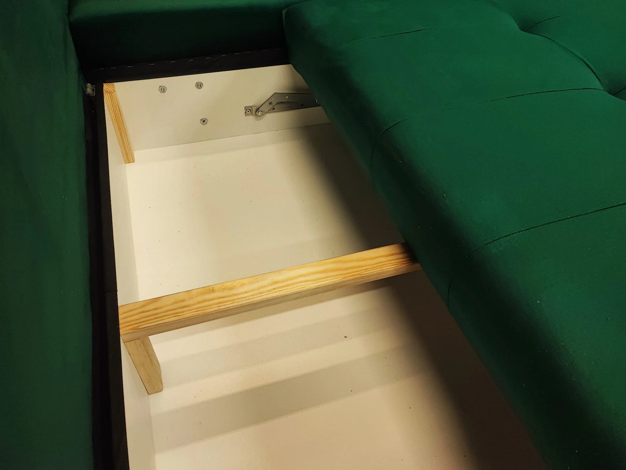 - Szkielet wykonany z płyty meblowej wzmocniony litym drewnem - Rama drewniana, na której zamocowano sprężyny faliste to solidny materiał o wysokiej wytrzymałości. Jakość materiałów zapewnia trwałość mebla.