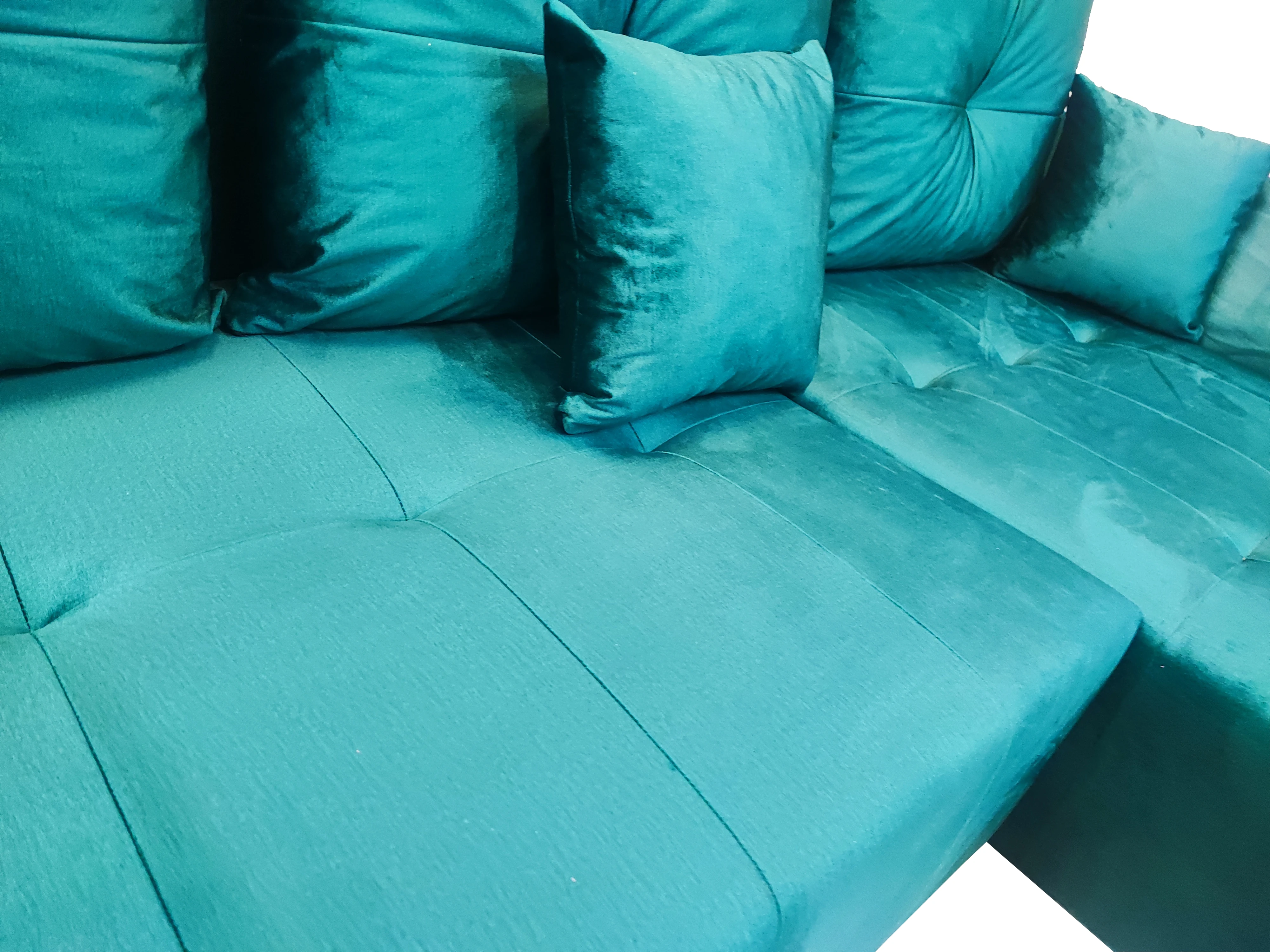 Narożnik rozkładany Mira to mebel funkcjonalny, który posiada wszystko, by można było go pokochać od pierwszego wejrzenia. Tkanina Monolith - Przyjemna w dotyku oraz hydrofobowa, dzięki czemu bez problemu utrzymasz rogówkę w czystości. Dodatkowo: Pojemnik na pościel, automat ułatwiający rozkładanie, sprężyna falista na siedziskach oraz Pianka PUR T-30. Czego można oczekiwać więcej od narożnika?