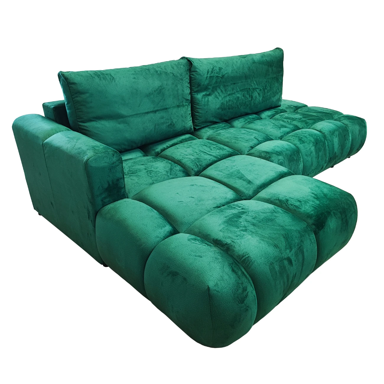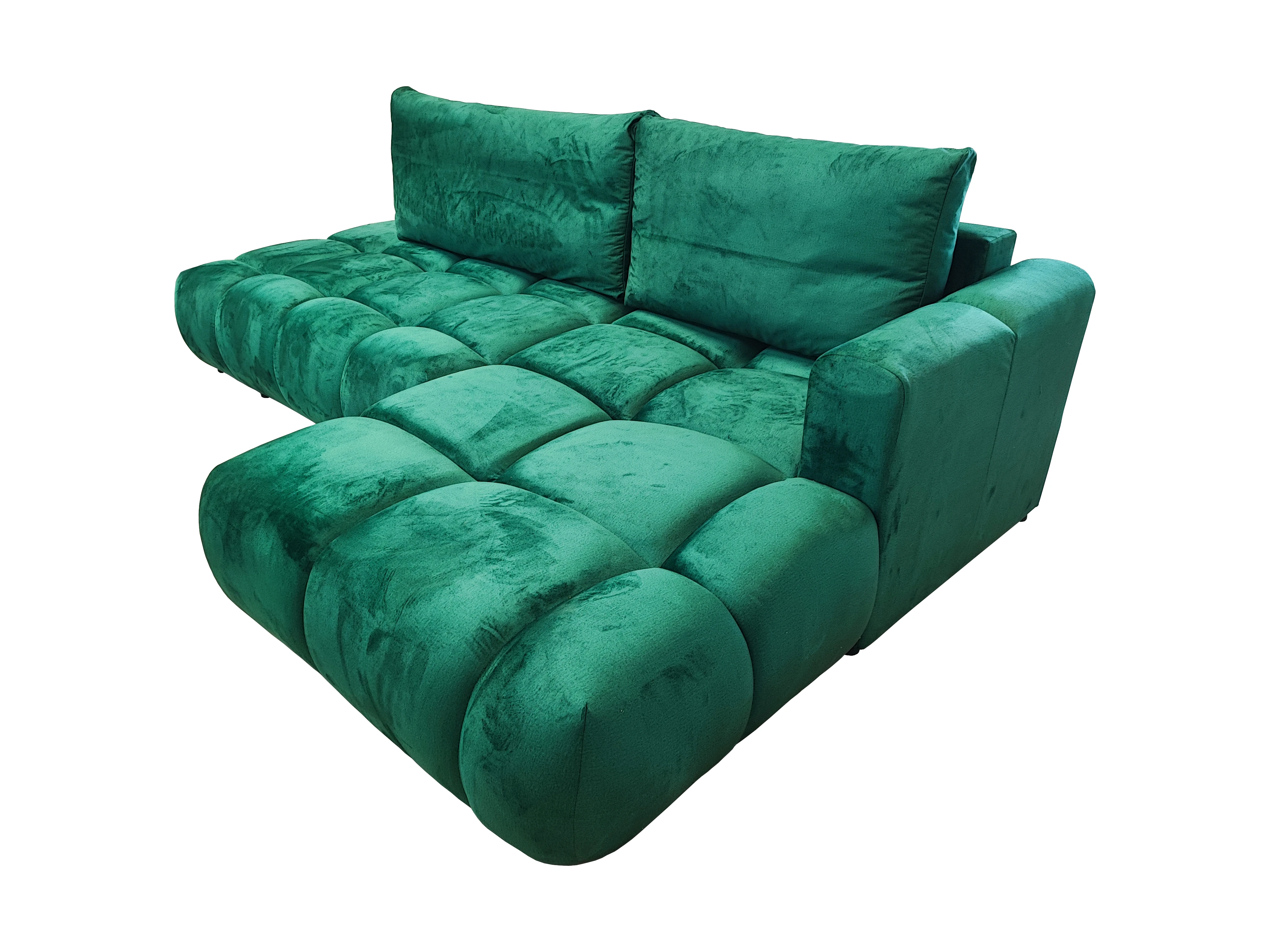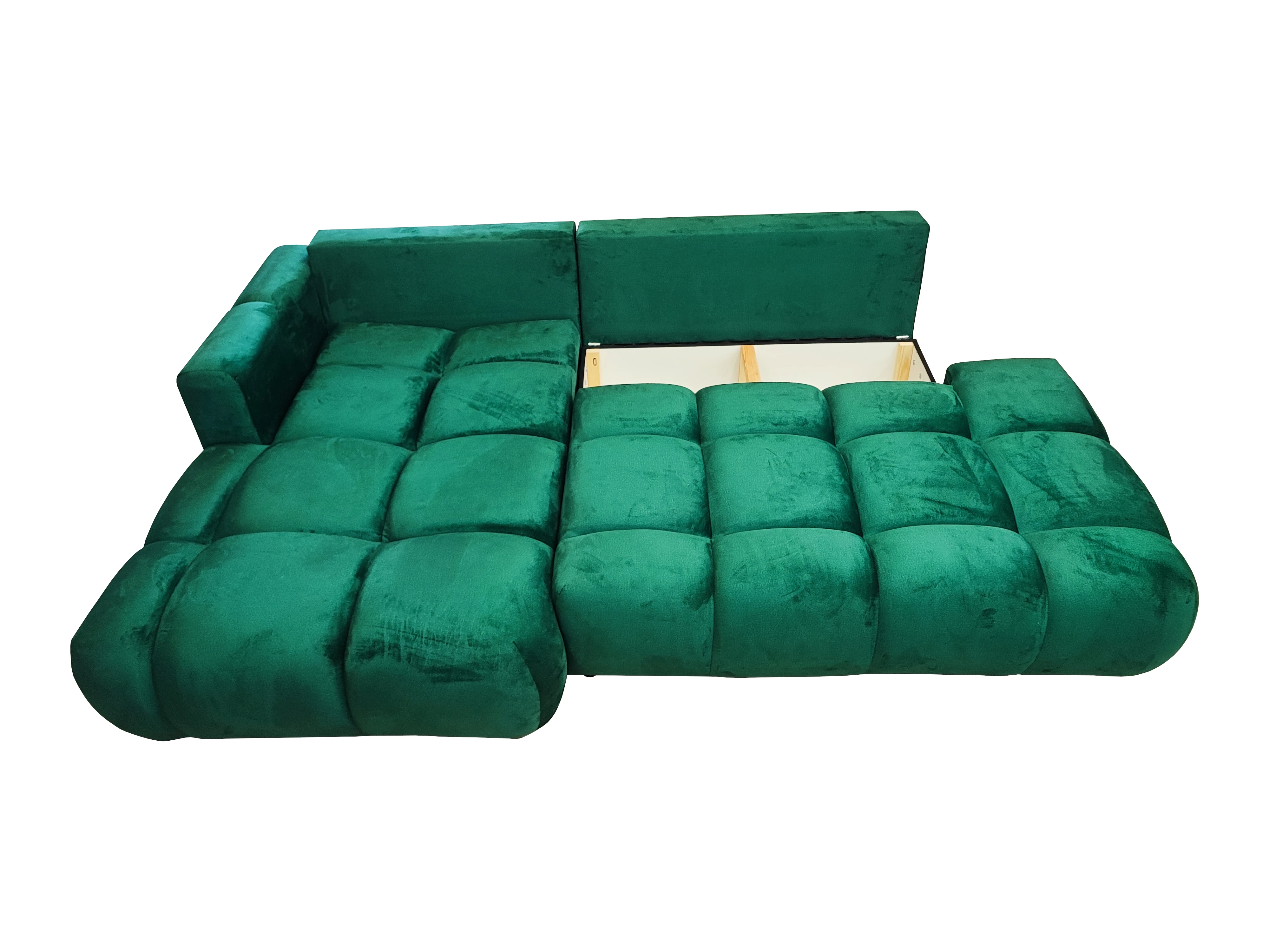 Zielony narożnik rozkładany Soffi - Funkcja spania, pojemnik, welur - czego chcieć więcej?