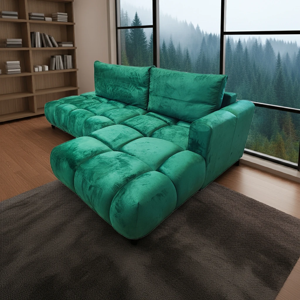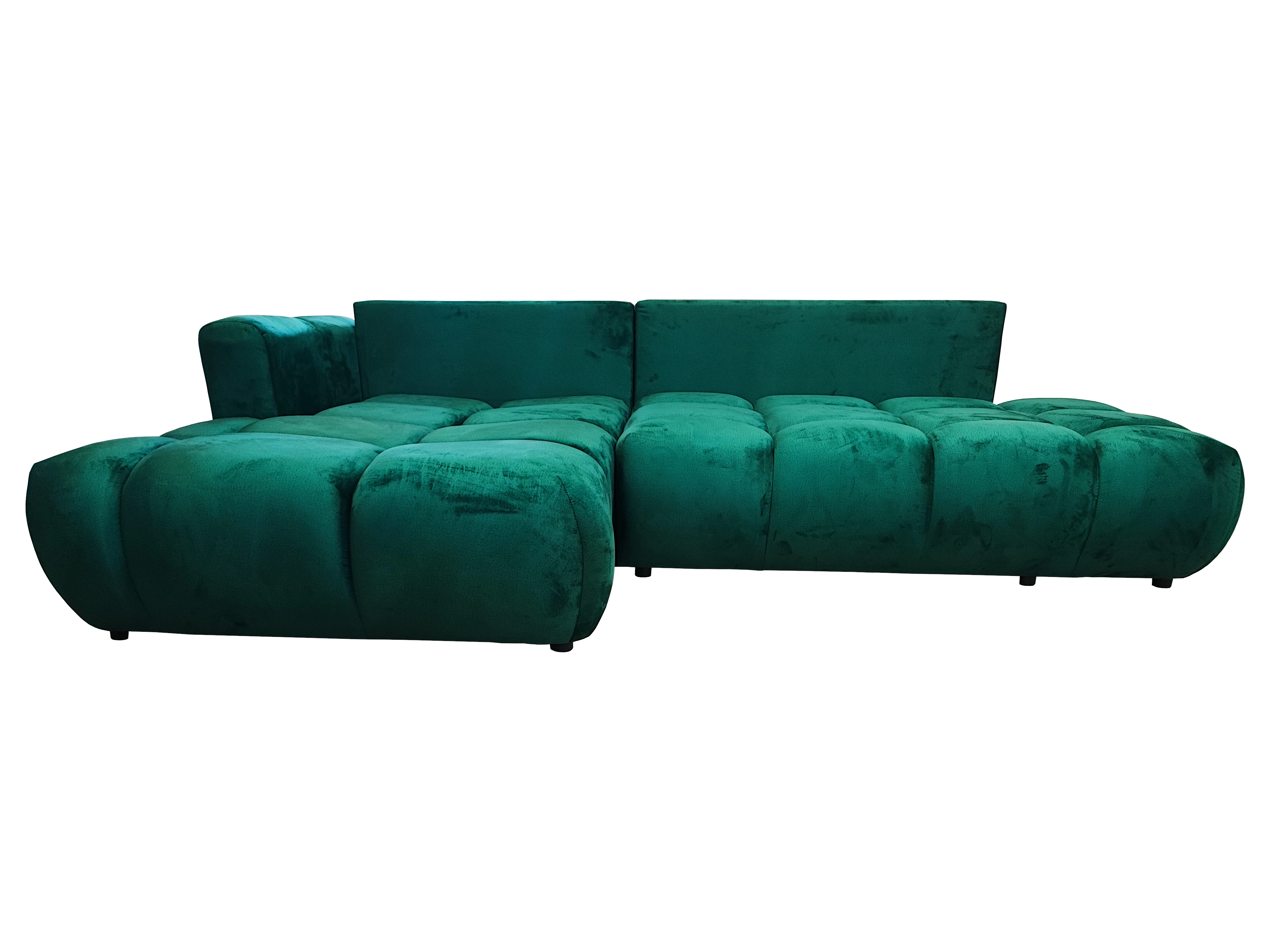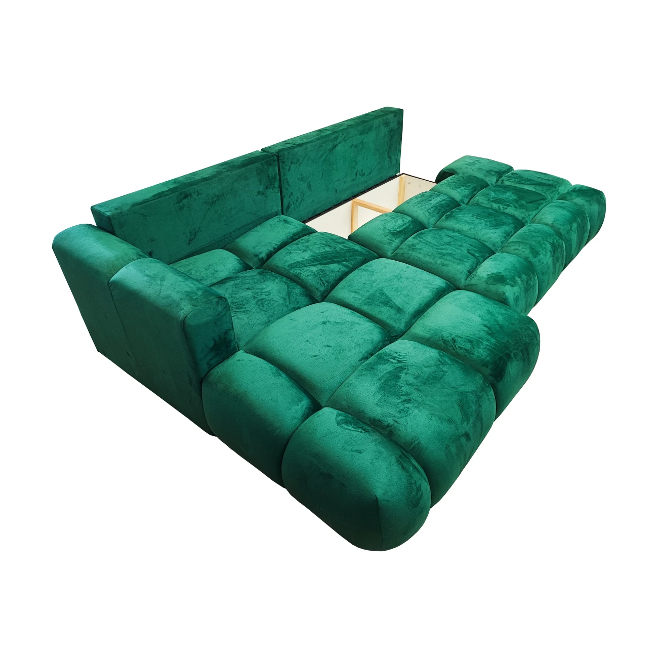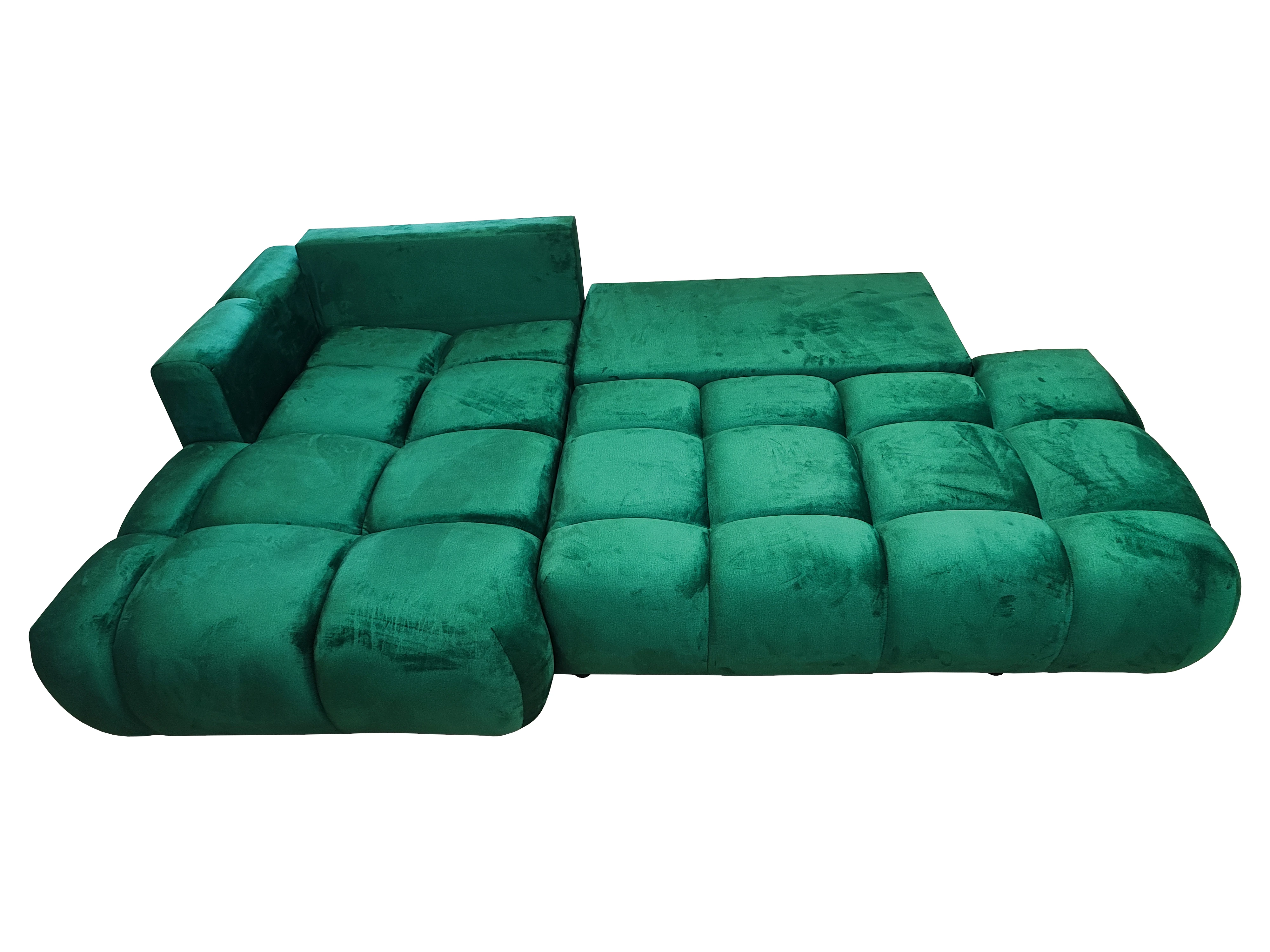 Zielony narożnik rozkładany Soffi - Funkcja spania, pojemnik, welur - czego chcieć więcej?