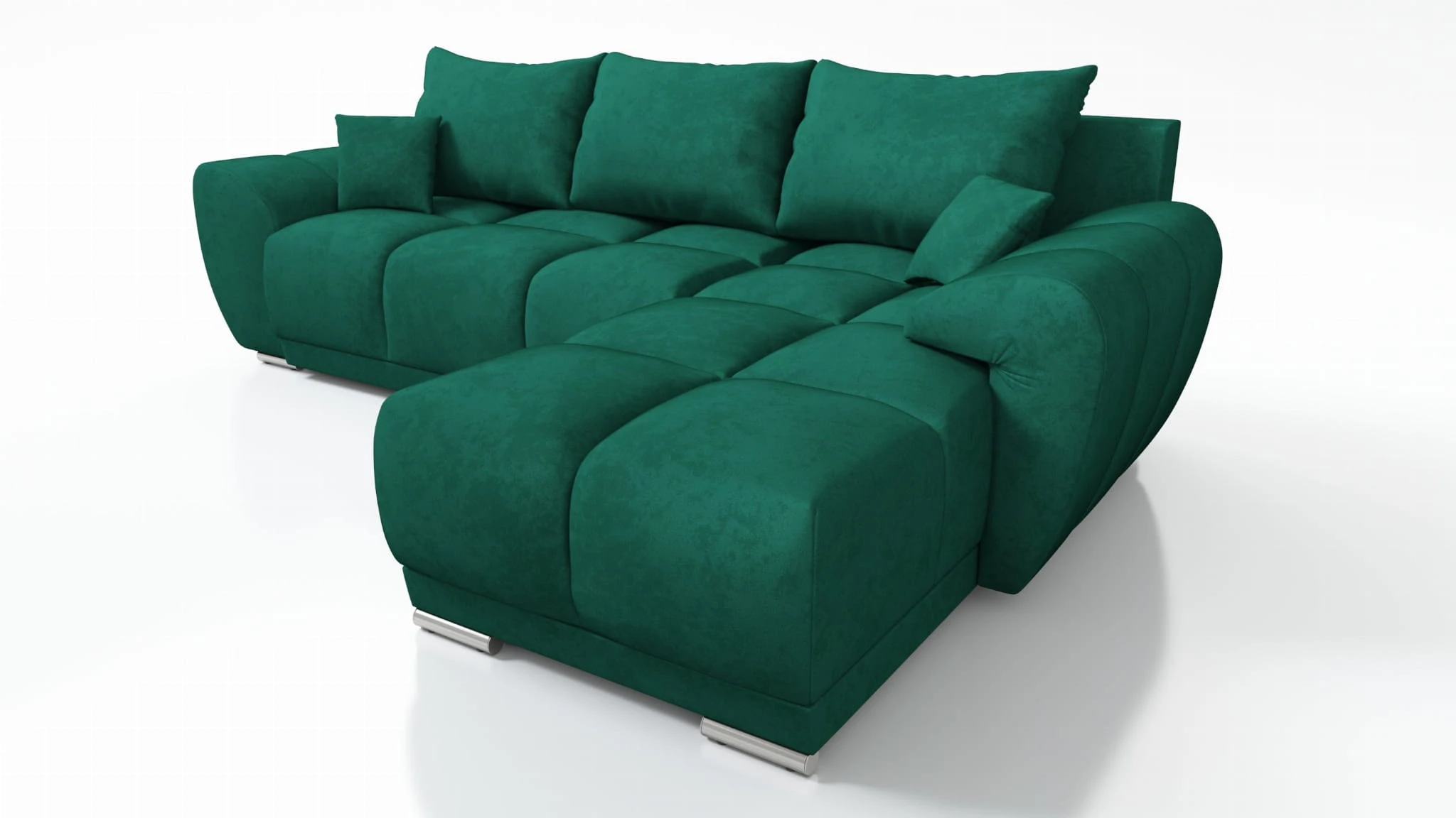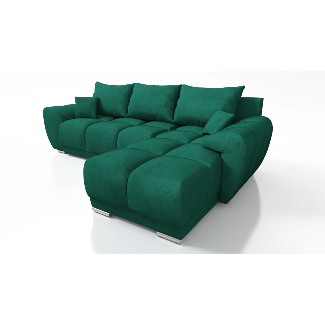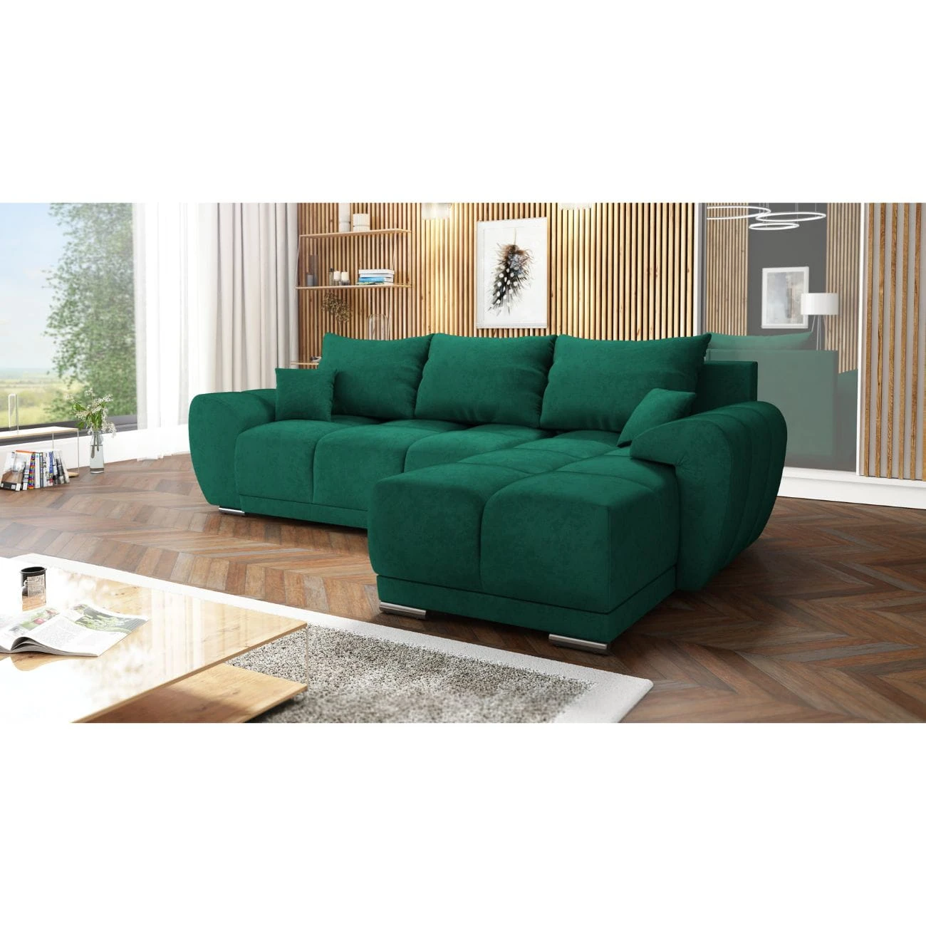 Zielony pikowany narożnik honey l z funkcja spania + pojemnik na pościel
