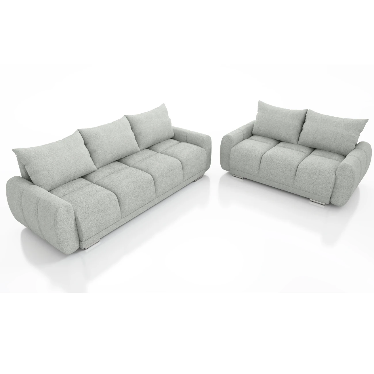 - Błyszczące, srebrne nóżki z przodu sofy